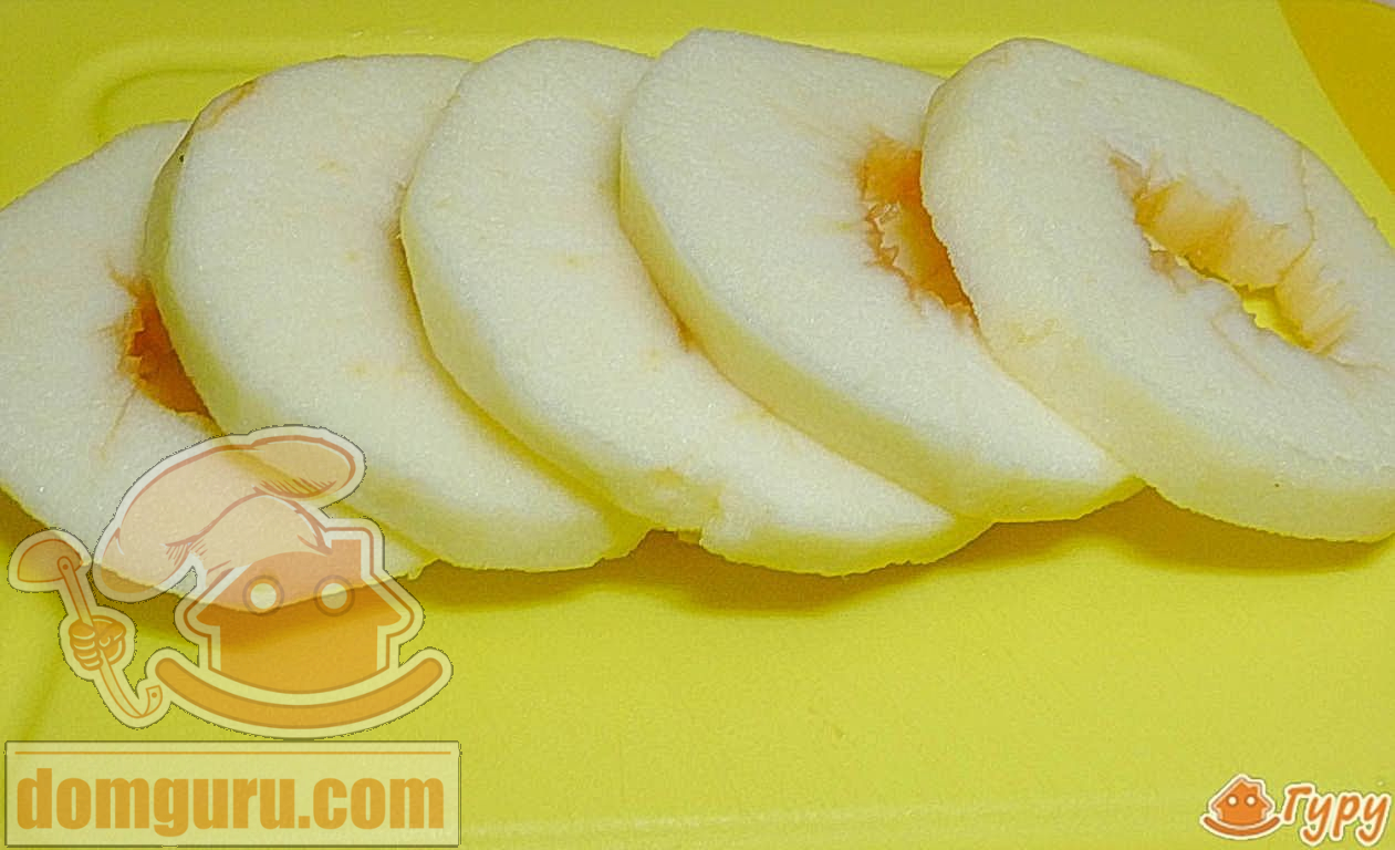 Яблоки промойте, очистите от кожуры, удалите сердцевину, затем нарежьте кольцами около 0,5 см.