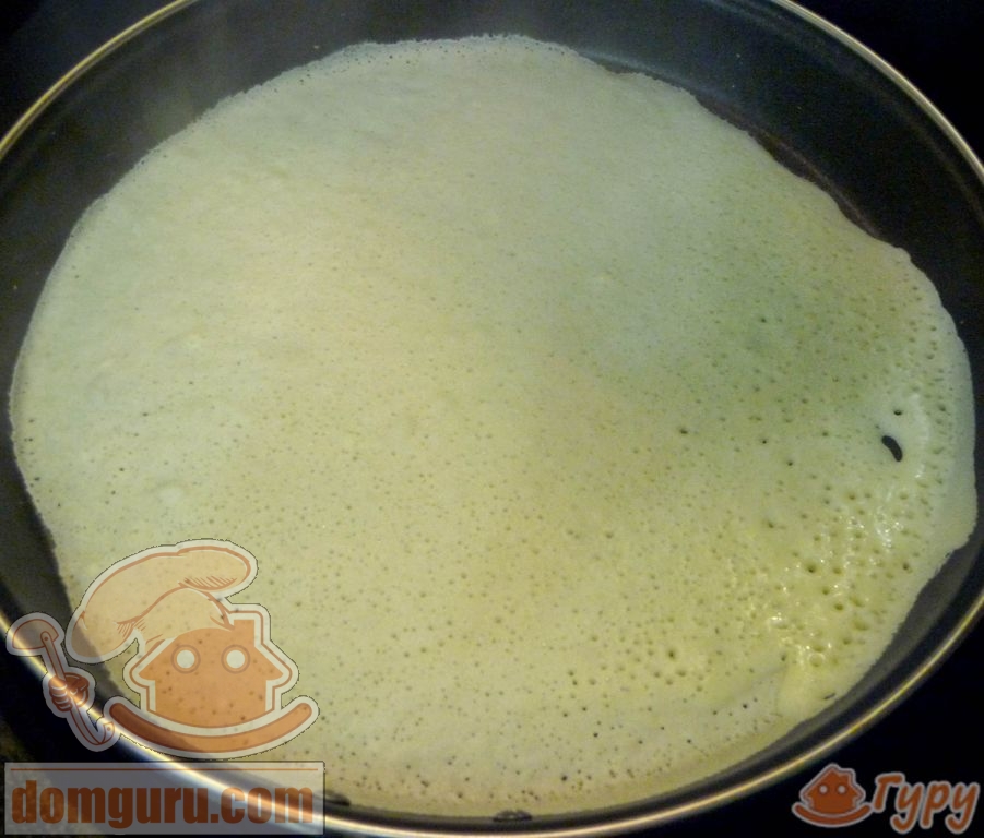Блины выпекайте быстро, на хорошо прогретой сковороде с толстым дном сначала с одной стороны.