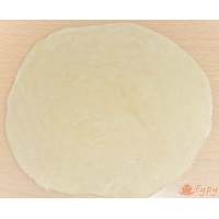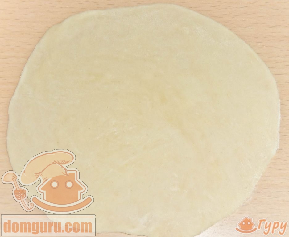 Тесто раскатайте в пласт толщиной около 1-2 мм и при помощи блюдца вырежьте круги.