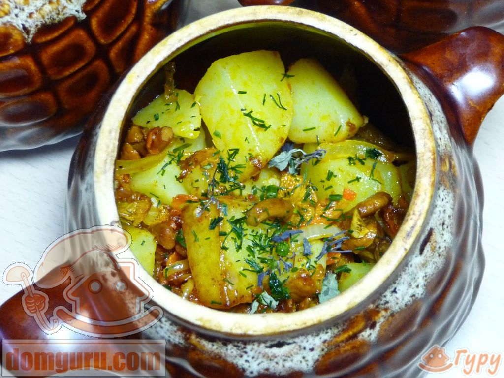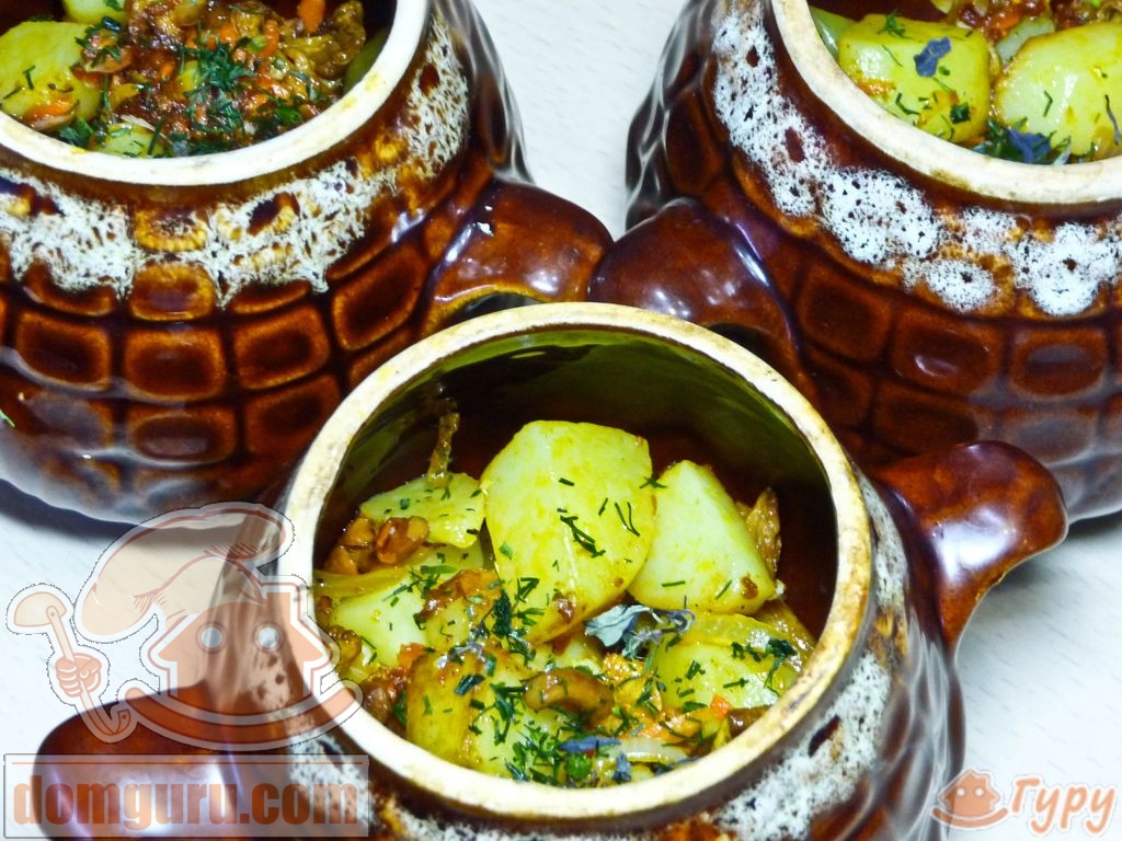 Картофель, тушённый с грибами в горшочках – блюдо, обращающее нас к традициям русской кухни. Классическое сочетание грибов, картофеля и овощей дополнено томатной пастой и различными пряностями. По желанию вы можете изменить состав овощей, добавить в блюдо мясо или птицу.