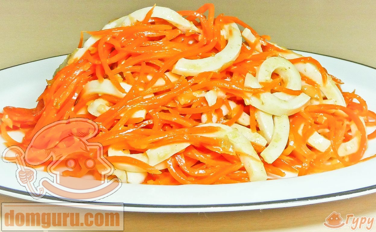 Как приготовить салат из моркови с кальмарами по-корейски - кулинарный рецепт.