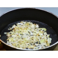 Разогрейте в сковороде растительное масло и обжарьте в нём лук.