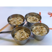В соус добавьте обжаренные грибы и куриную грудку. Все тщательно перемещайте и разложите по кокотницам.