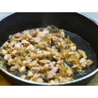 Через пару минут добавьте куриную грудку и обжаривайте до тех пор, пока не испарится вся жидкость.