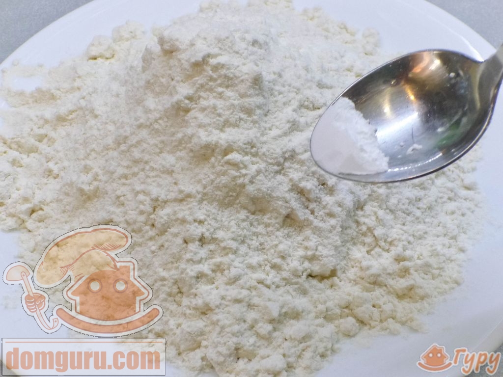 Смешайте 200 грамм муки с разрыхлителем для теста.