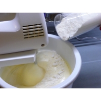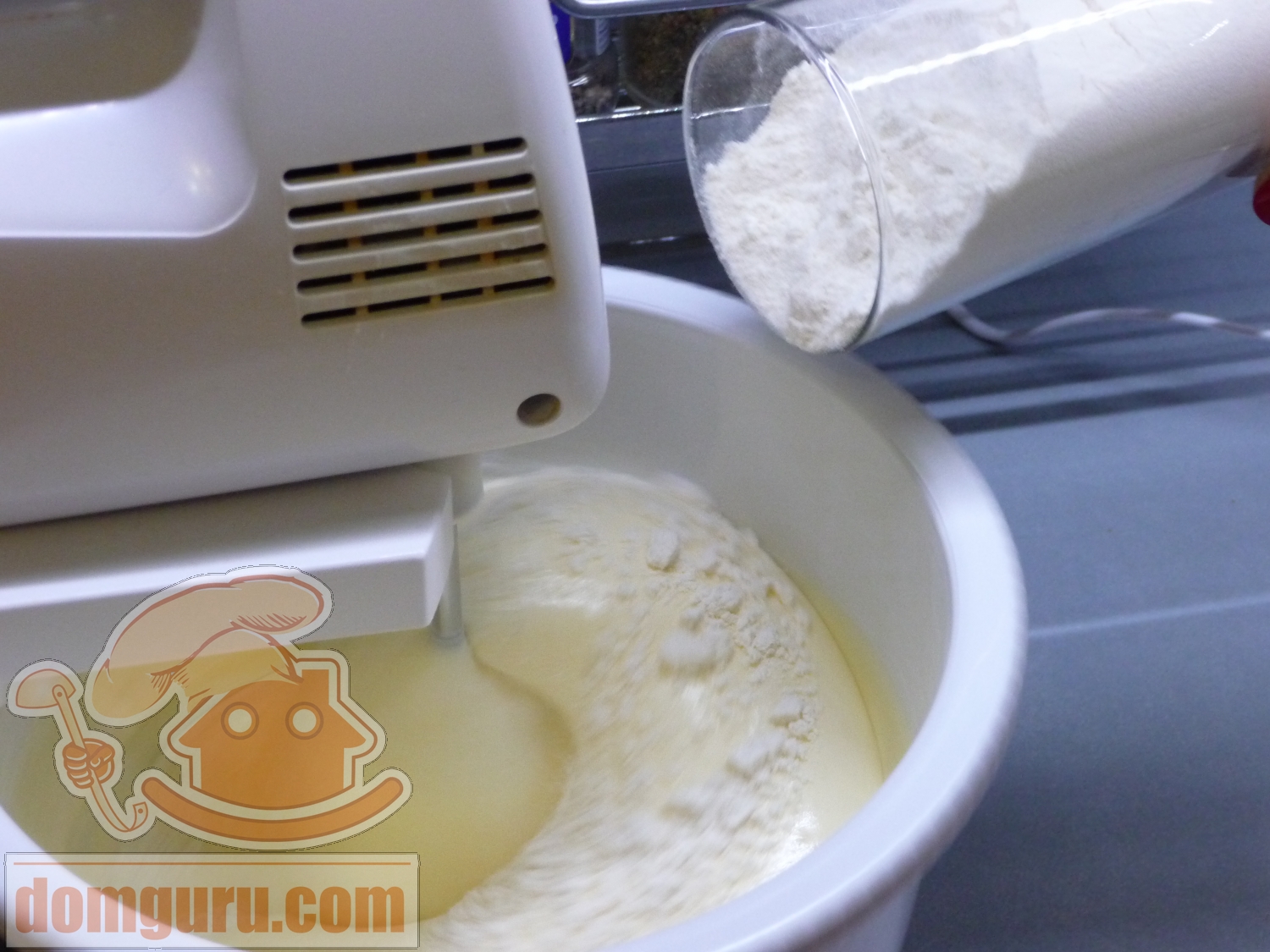 Постепенно всыпьте муку, осторожно перемешивая, чтобы не было комочков.