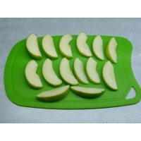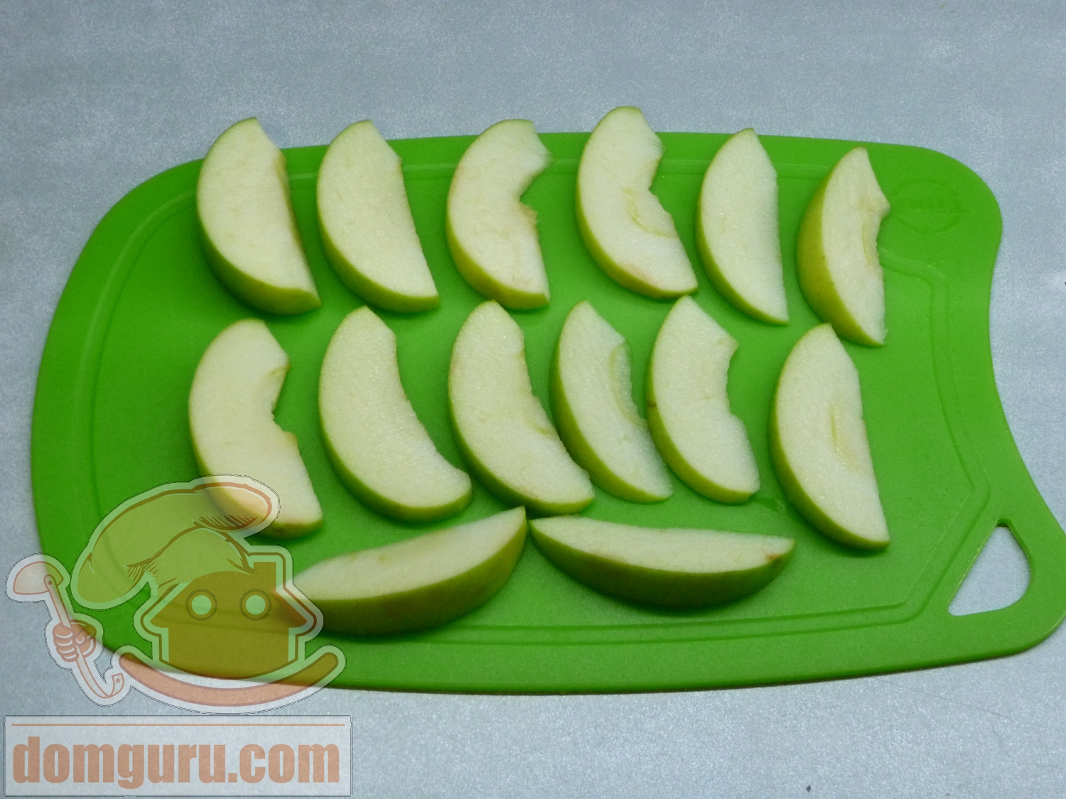Яблоки очистите от семечек и нарежьте ломтиками. Чтобы яблоки не темнели, полейте их лимонным соком.