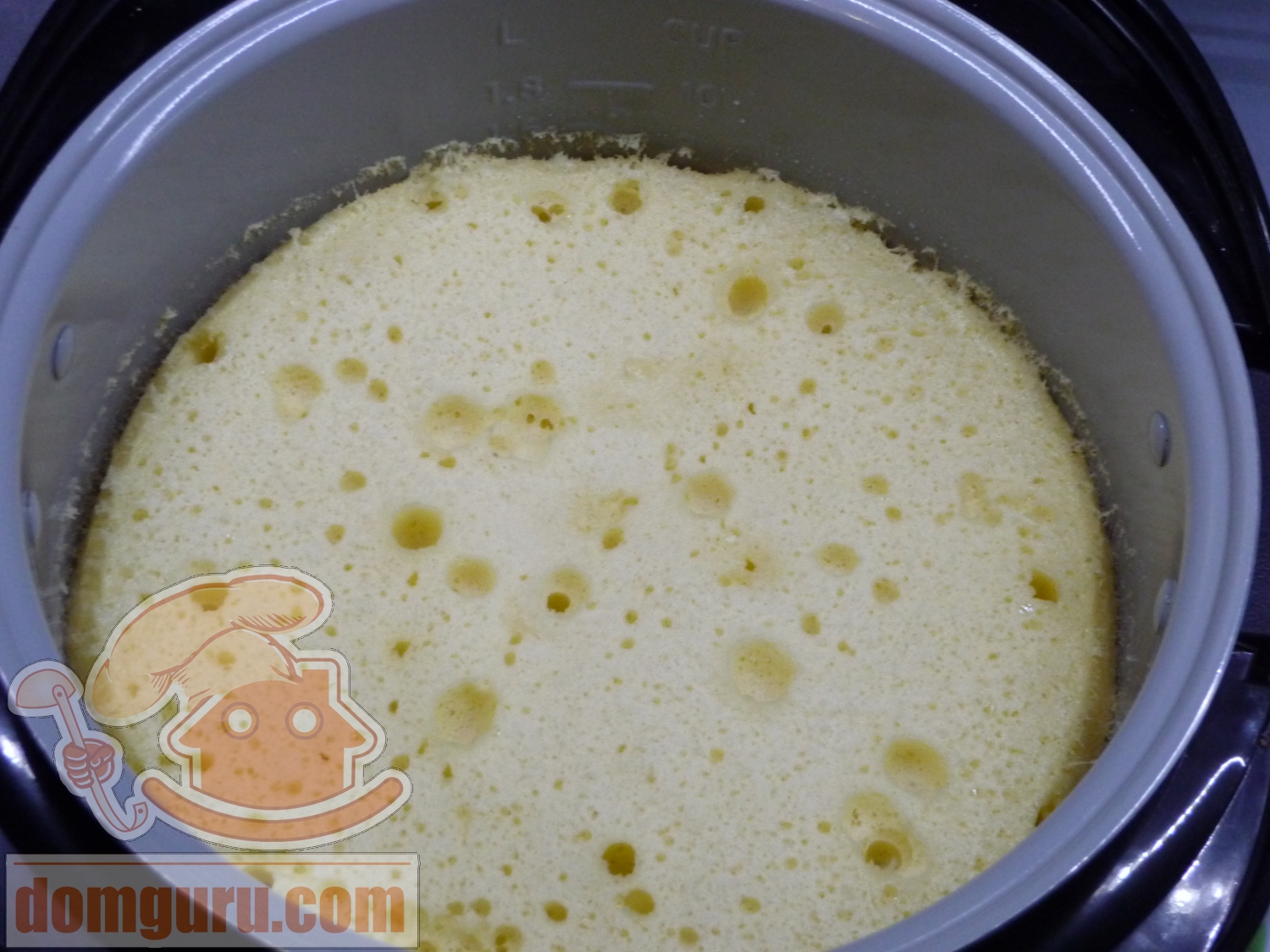 Оставляем шарлотку на 5-10 минут в мультиварке, а затем аккуратно переворачиваем ее.