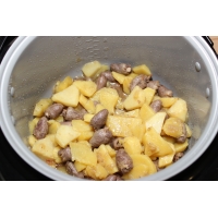 Через час куриные сердечки с картошкой готовы. По желанию можно добавить немного измельченного укропа и раздавить пару зубчиков чеснока, но это для любителей зелени.