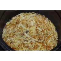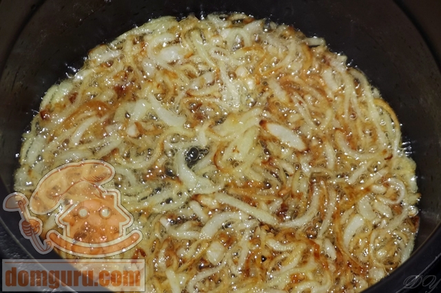 Разогрейте в чаше мультиварки масло на режиме Жарка/Выпечка. Поджарьте лук до золотистого цвета.