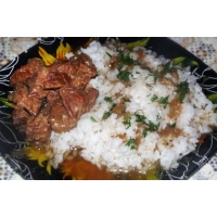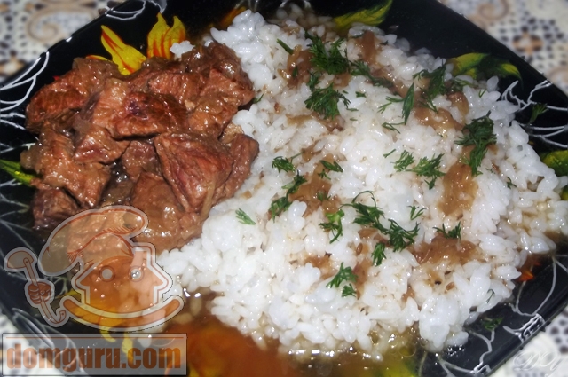 К гуляшу можно приготовить любой гарнир. К примеру рис. Украсьте зеленью. Приятного аппетита!