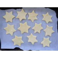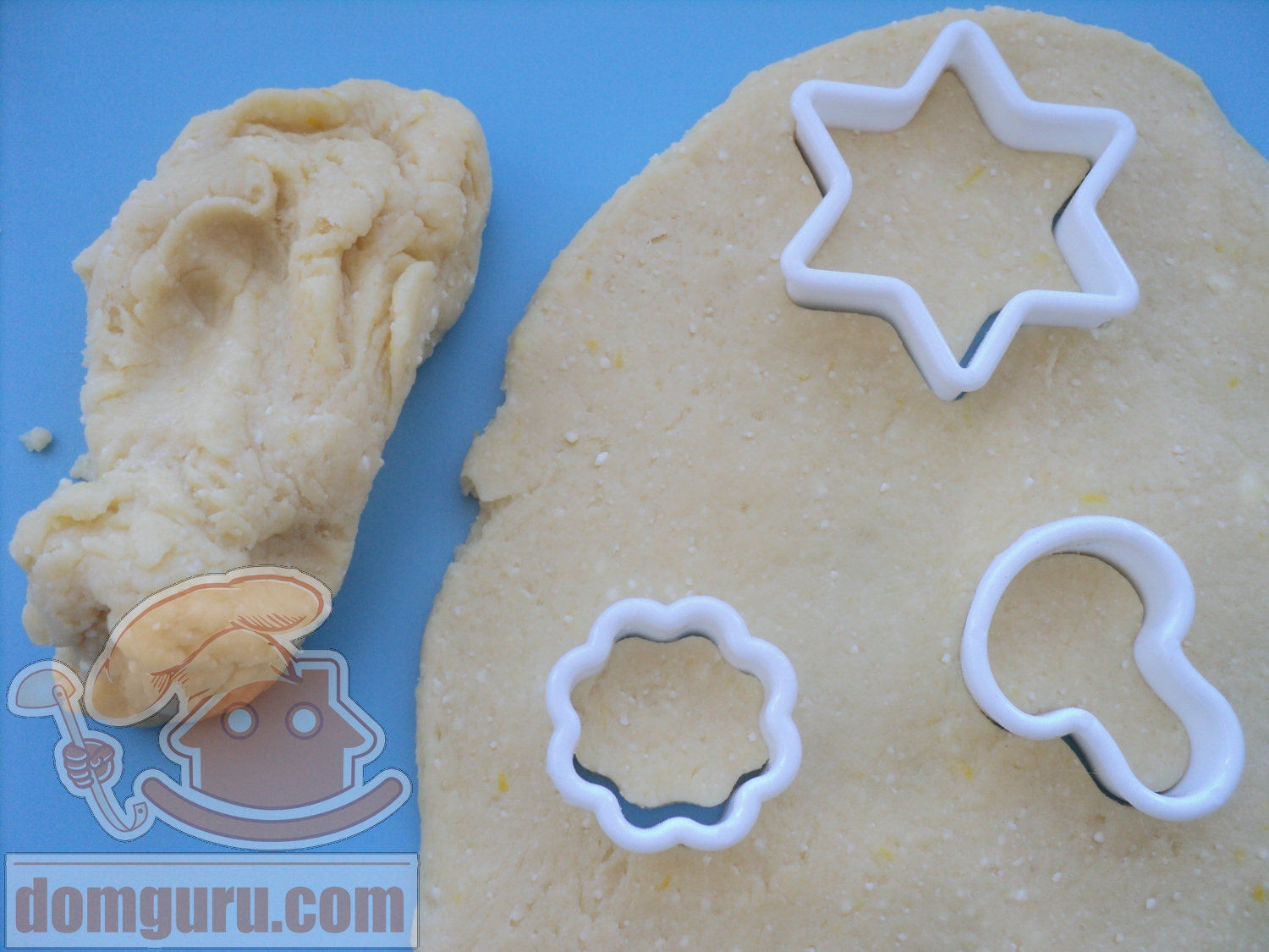 Сделайте колбаску и разделите её на 15 частей, сформируйте их в лепешки. Либо растяните тесто и вырежьте печенья формочками.