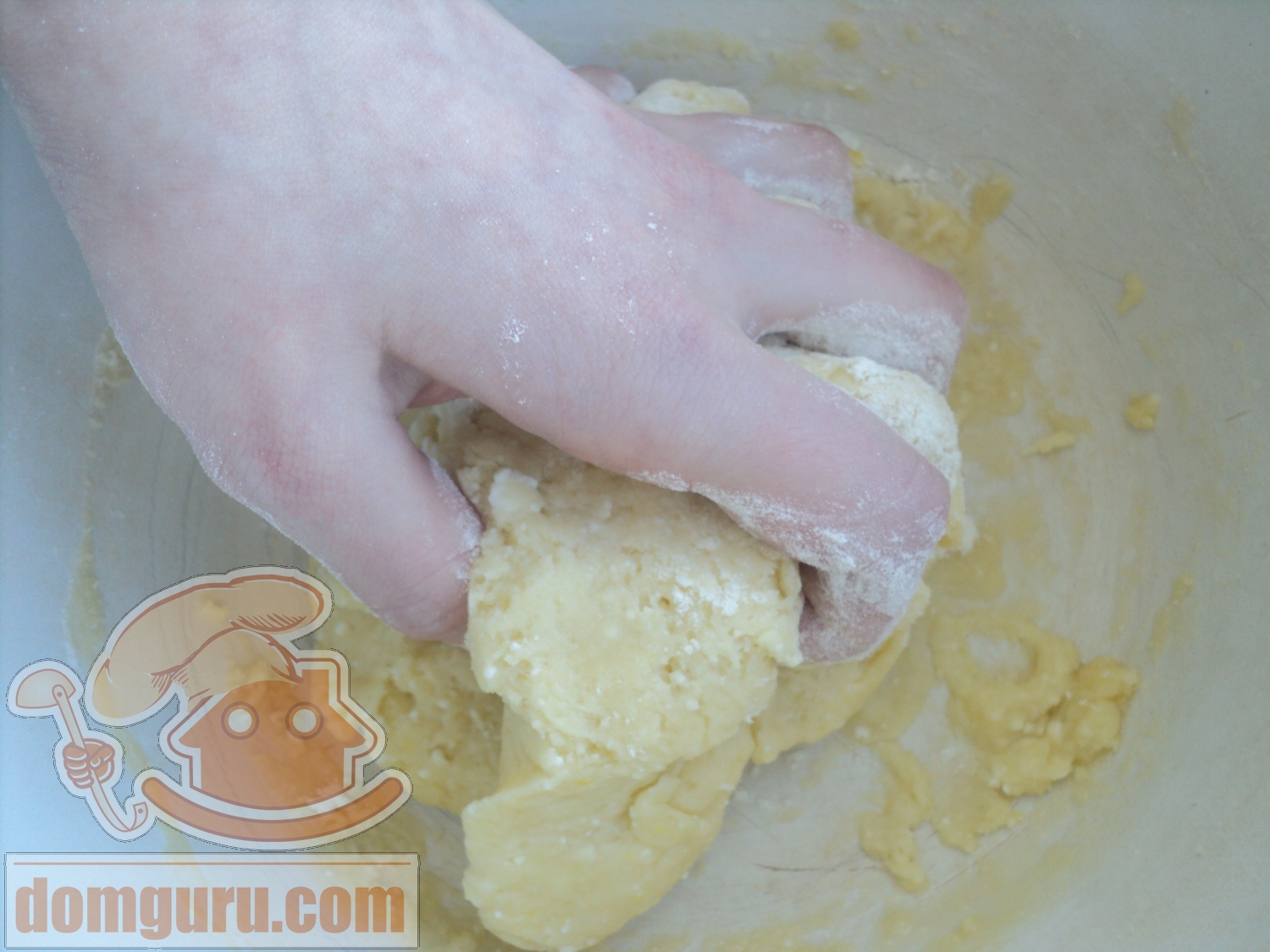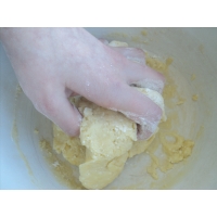 Змесите тесто руками.