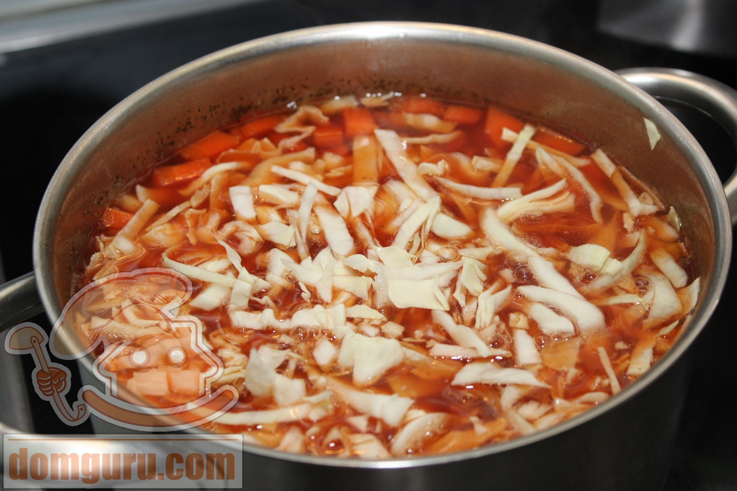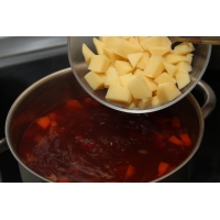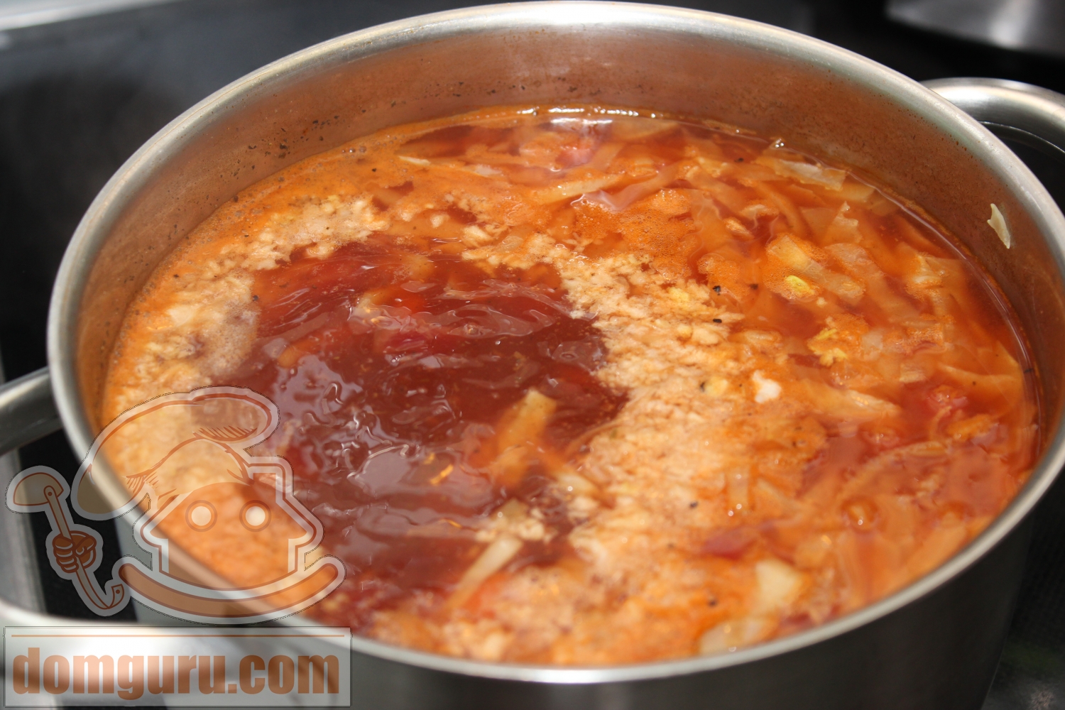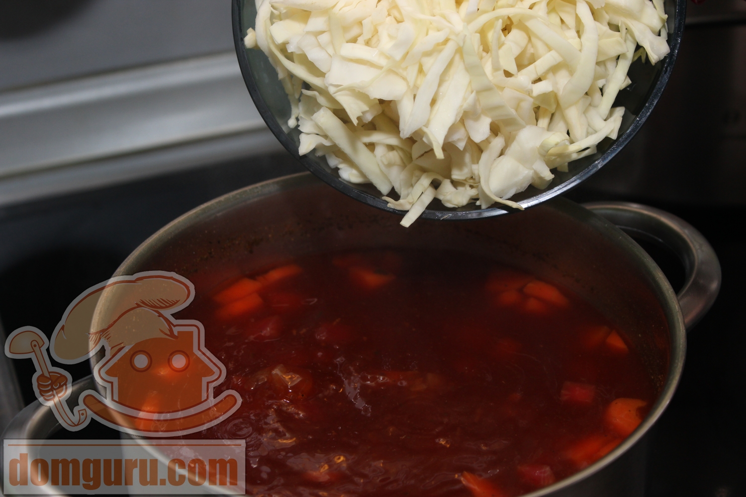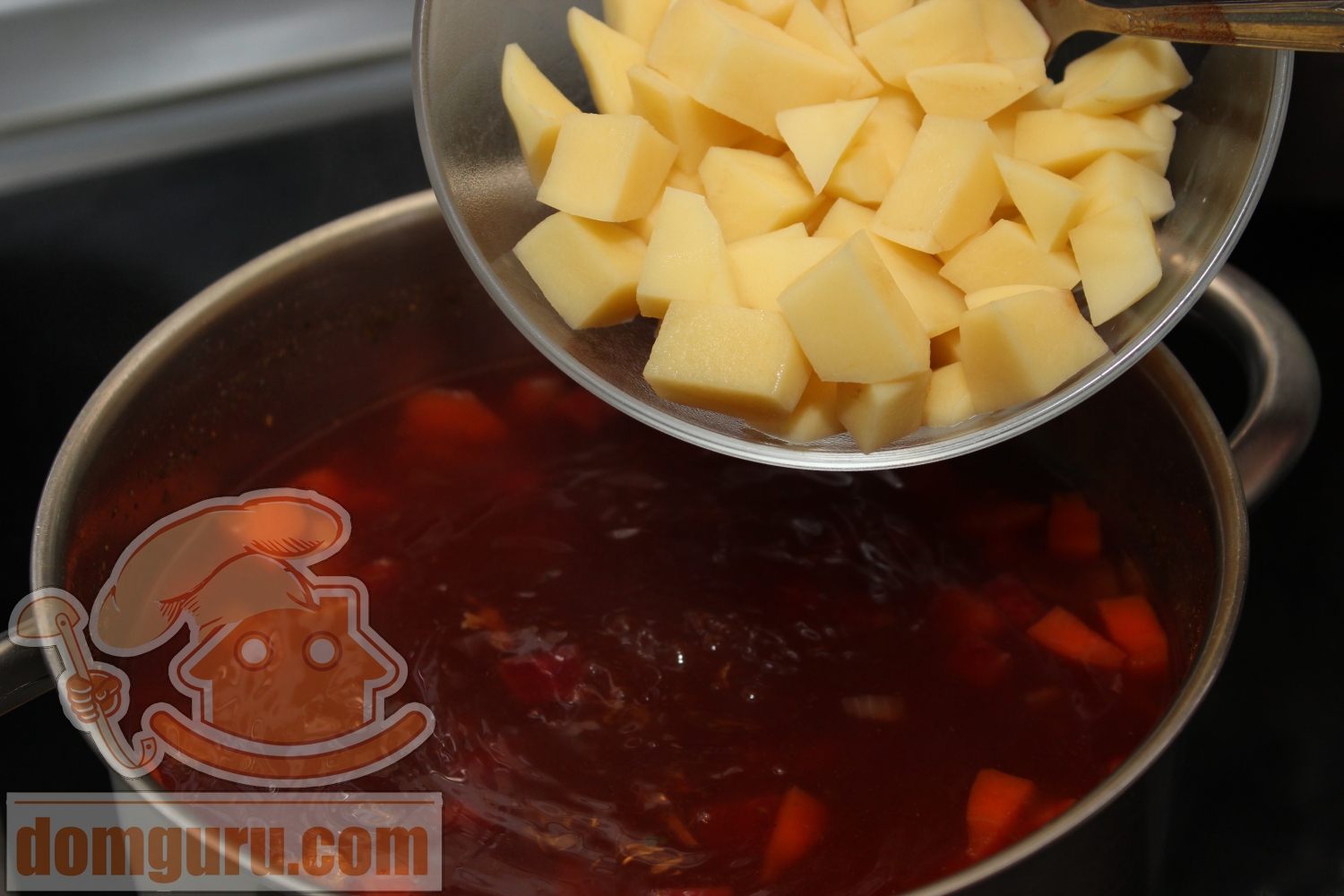 Добавьте картошку. Варите ленивый борщ 15 минут.