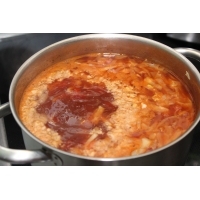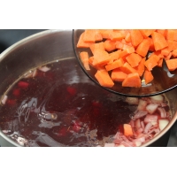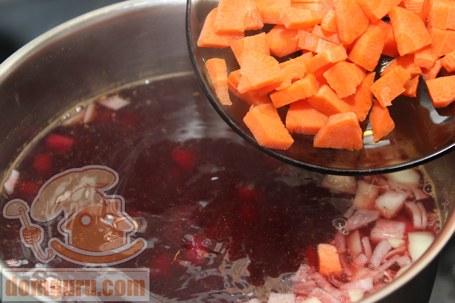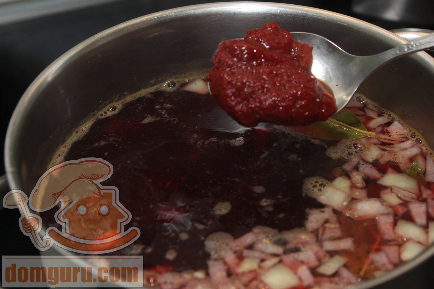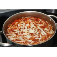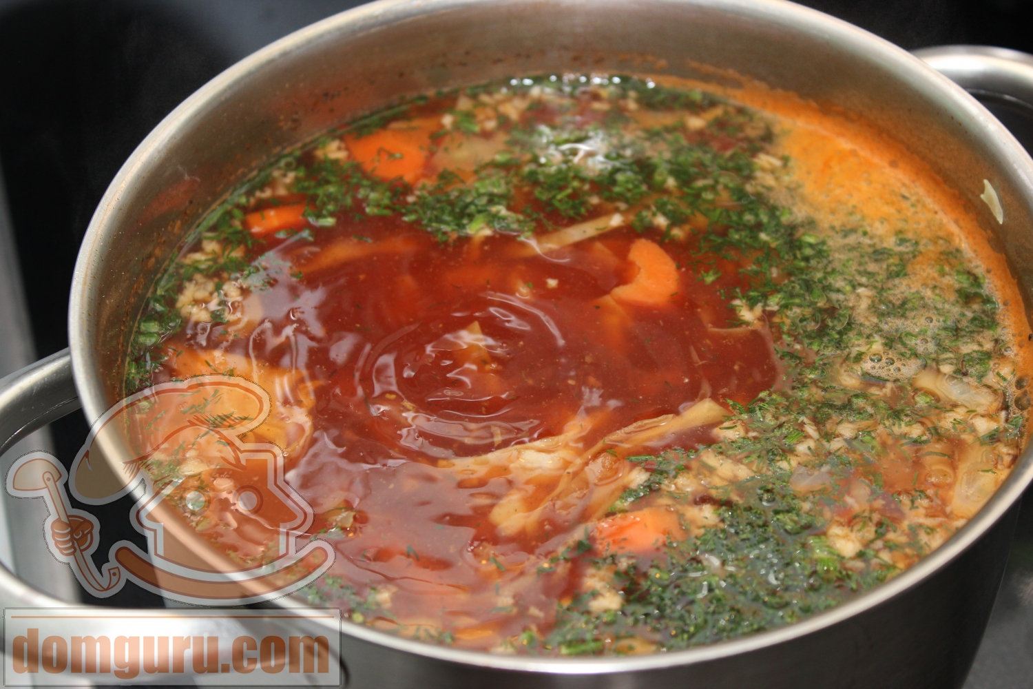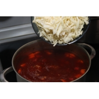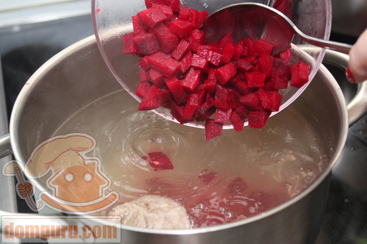 Добавьте картошку. Варите ленивый борщ 15 минут.