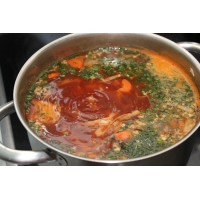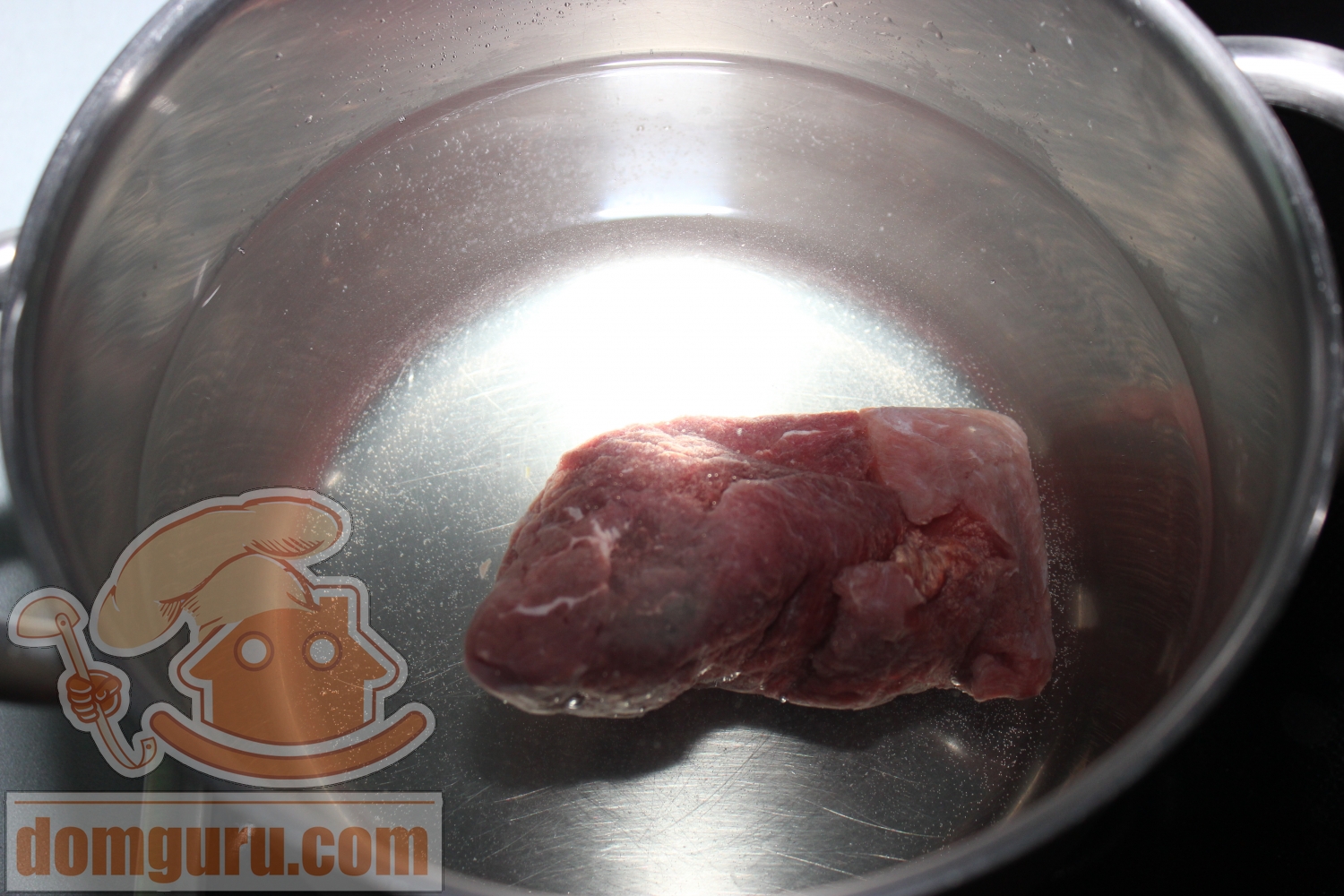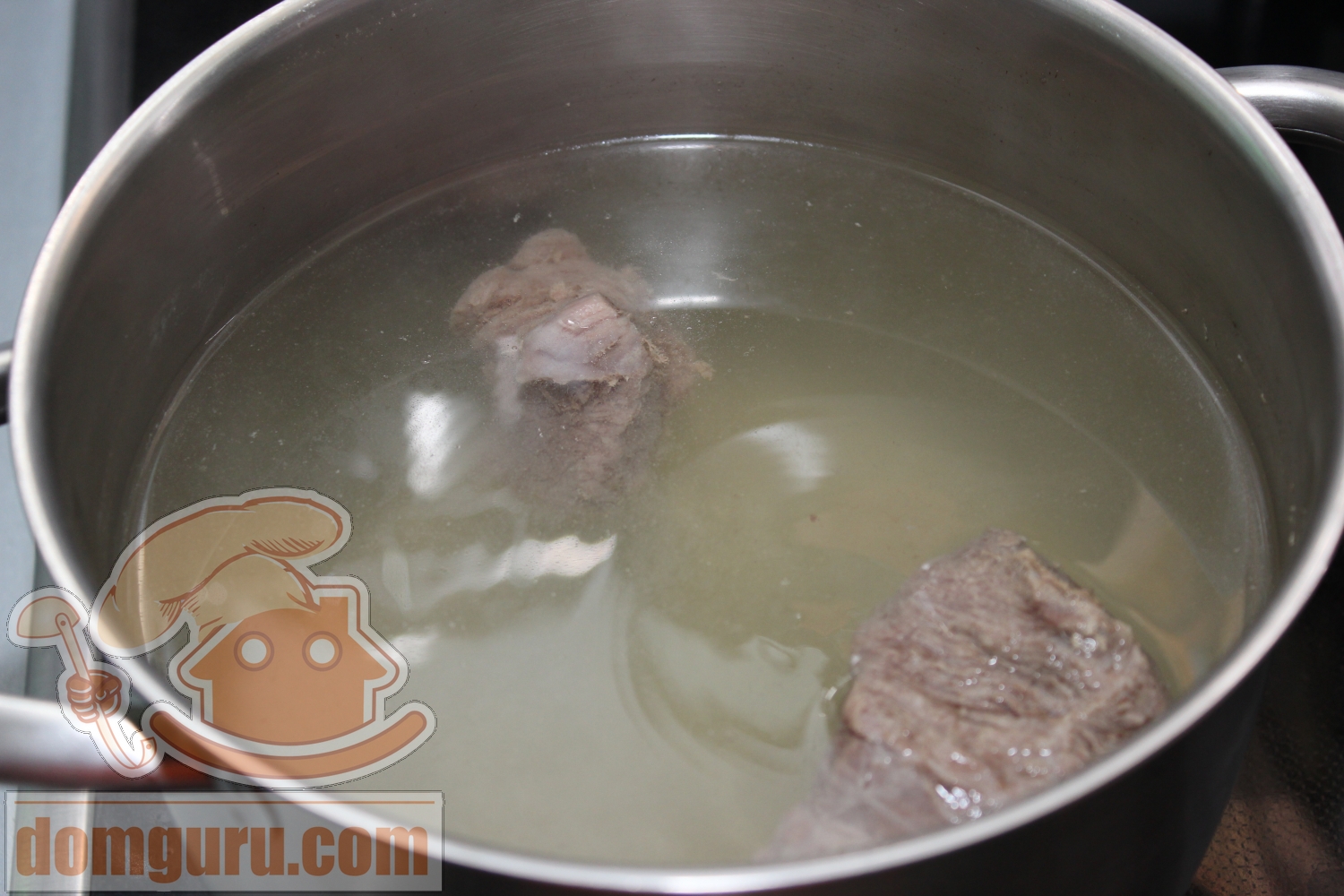 Когда вода закипит снимите пенку и на среднем огне варите мясо 1 час.