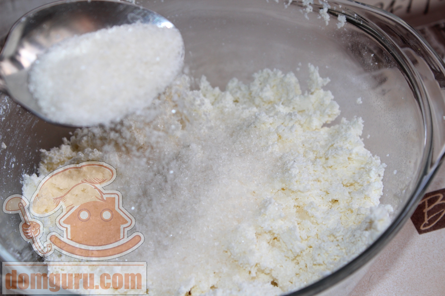 Добавьте сахар и ванильный сахар. Тщательно перемешайте.
