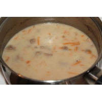 Разведите в половине стакана теплой воды томатную пасту, муку и сметану. Хорошо перемешайте, чтобы не было комочков.