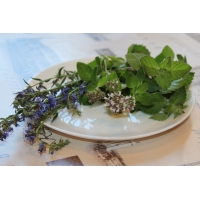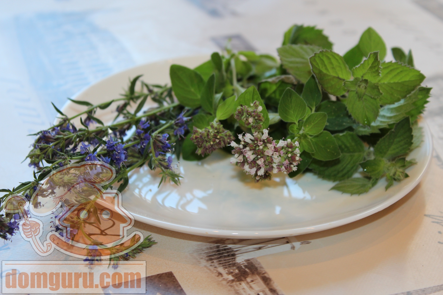 Возьмите по веточке мяты, душицы и иссопа. Тщательно вымойте.