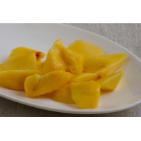 Персик промойте, снимите шкурку, выньте косточку, мякоть крупно нарежьте.
