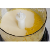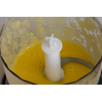 Поместите кусочки персика в блендер, измельчите в гладкое однородное пюре.