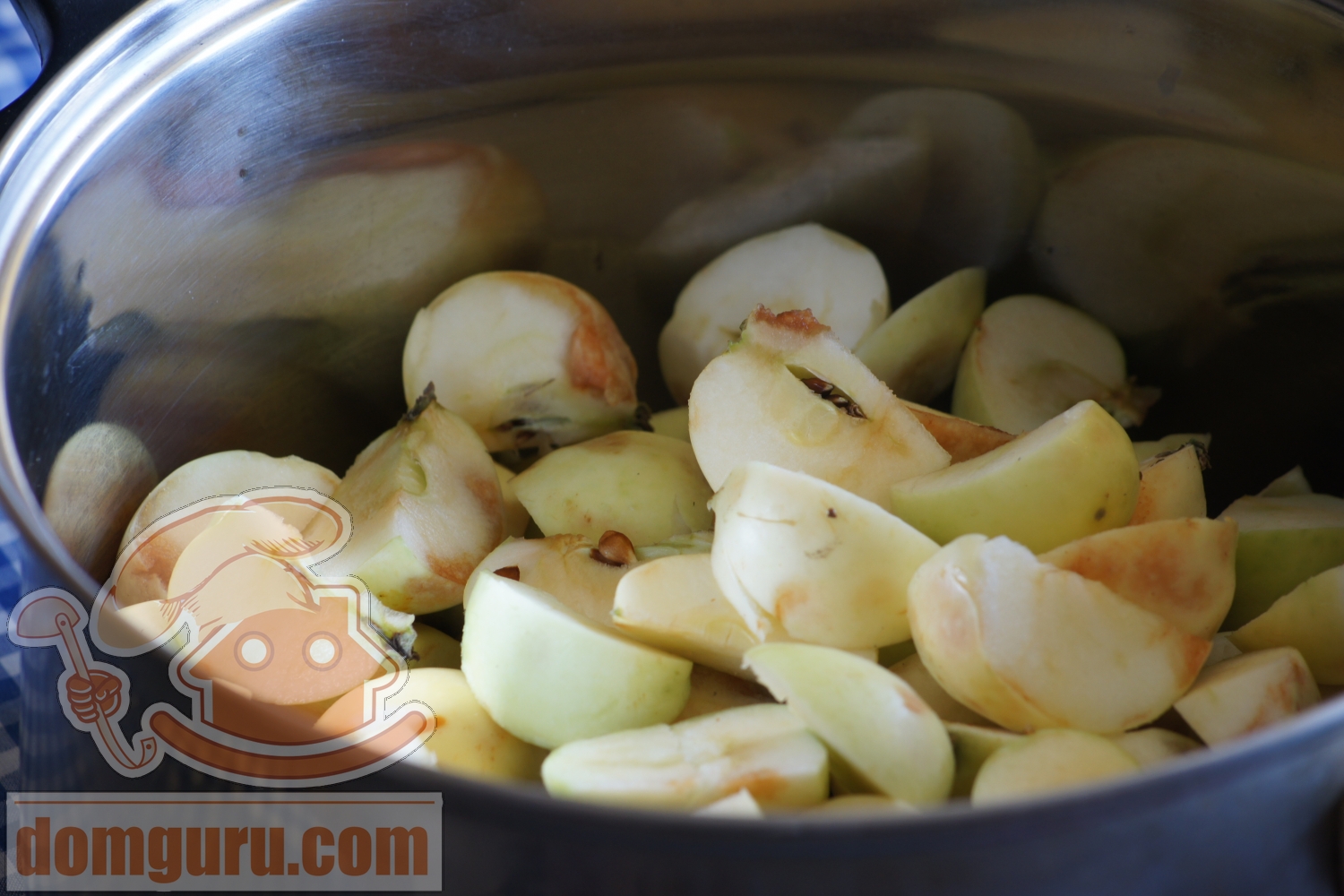 Яблоки промойте, крупно нарежьте удаляя черенки, подпорченные и червивые места. Сложите в кастрюлю.
