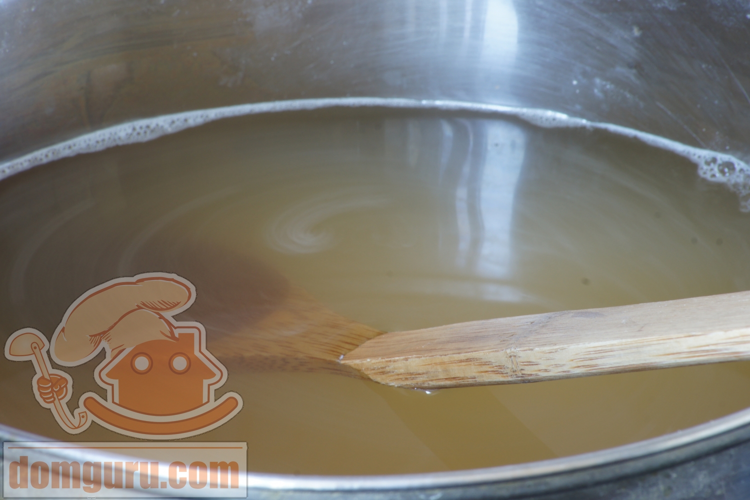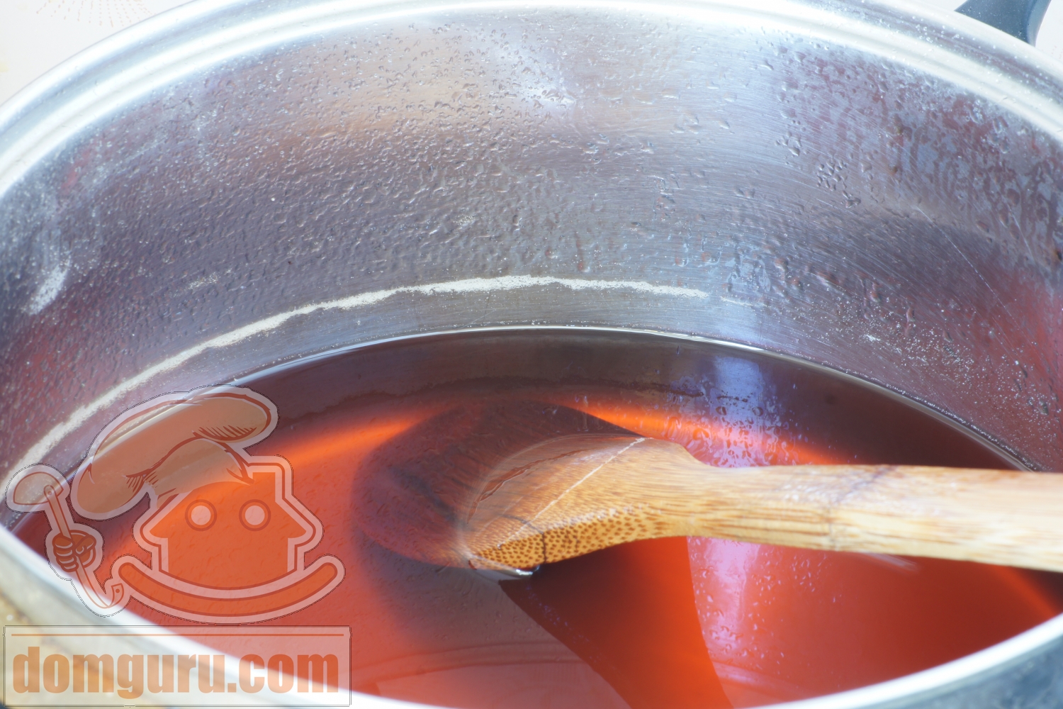 Отмерьте количество полученного отвара. Поместите его в кастрюлю. Добавьте сахар из соотношения: на 1,5 л отвара - 1 кг сахара.