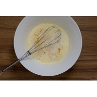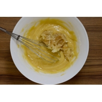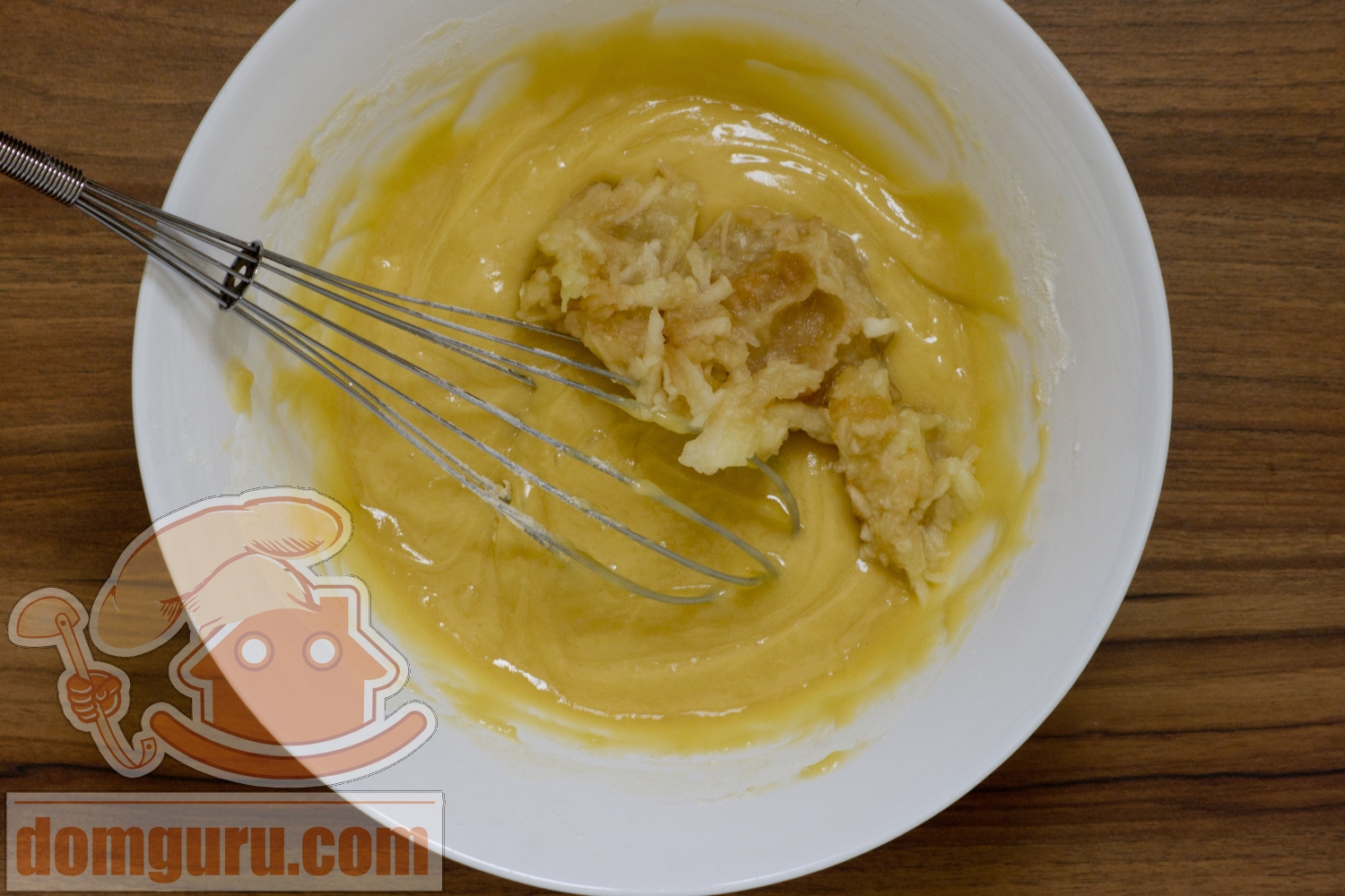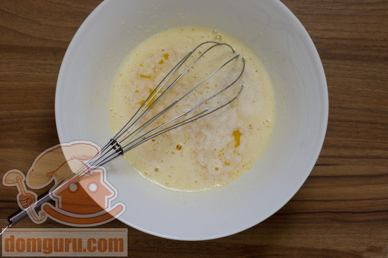Взбейте яйца с сахаром и солью. Добавьте растопленное сливочное масло, остывшее до комнатной температуры. Перемешайте.