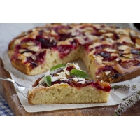 Пирог представляет собой удачное сочетание нежного сливочного теста, ярких по вкусу слив и приятного дополнения в виде миндальных лепестков.