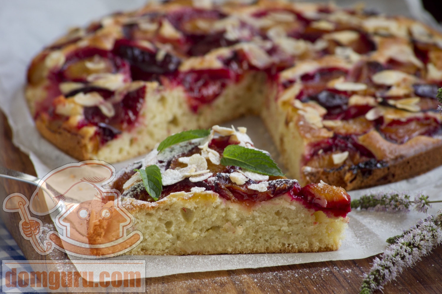 Пирог со сливами и миндальными лепестками - кулинарный рецепт.
