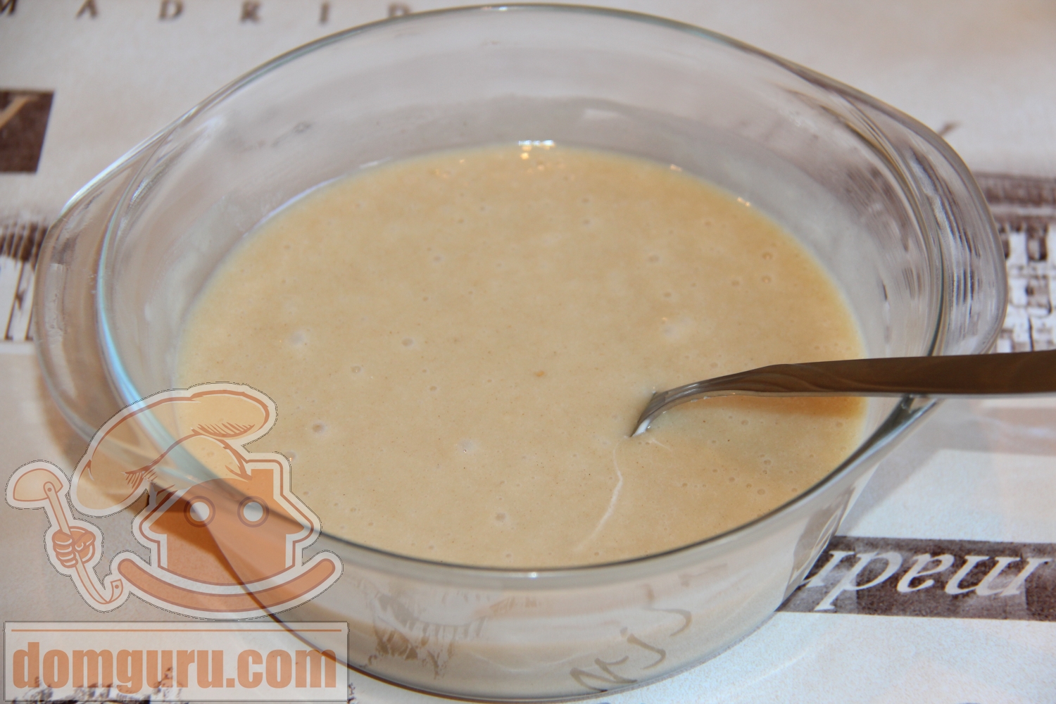 Из сметаны, сахара, яиц, ванилина, соды, гашенной уксусом, корицы и муки замесите тесто. Тесто должно получиться полужидким, без комочков.