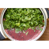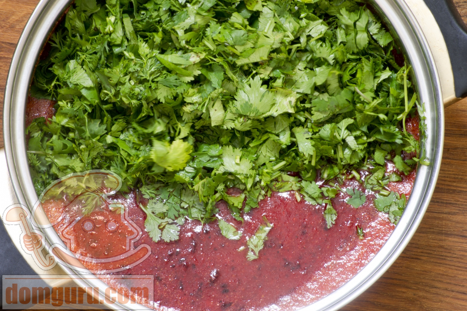 Такой соус, с большим количеством свежей кинзы, с добавлением ароматного кориандра идеально подойдет к большому количеству вторых блюд. В зависимости от предпочтений добавляйте в соус жгучий перец. Особенно хорошо этот соус сочетается с шашлыком и другим жареным мясом. Ароматный, густой, пряно-сладковатый с кислинкой, сливовый соус с кинзой сделает любое блюдо совершенно особенным и оригинальным.