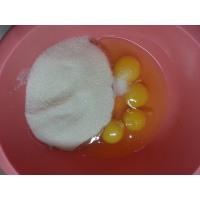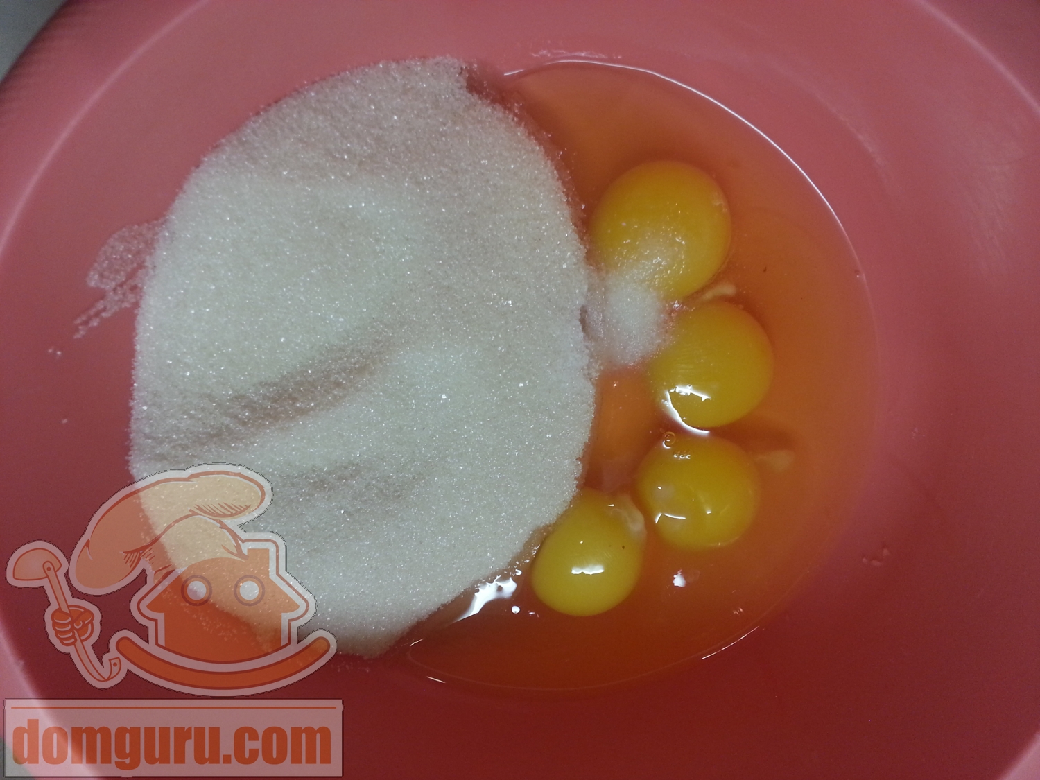 Яйца, сахар и ванильный сахар хорошо взбейте.
