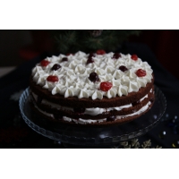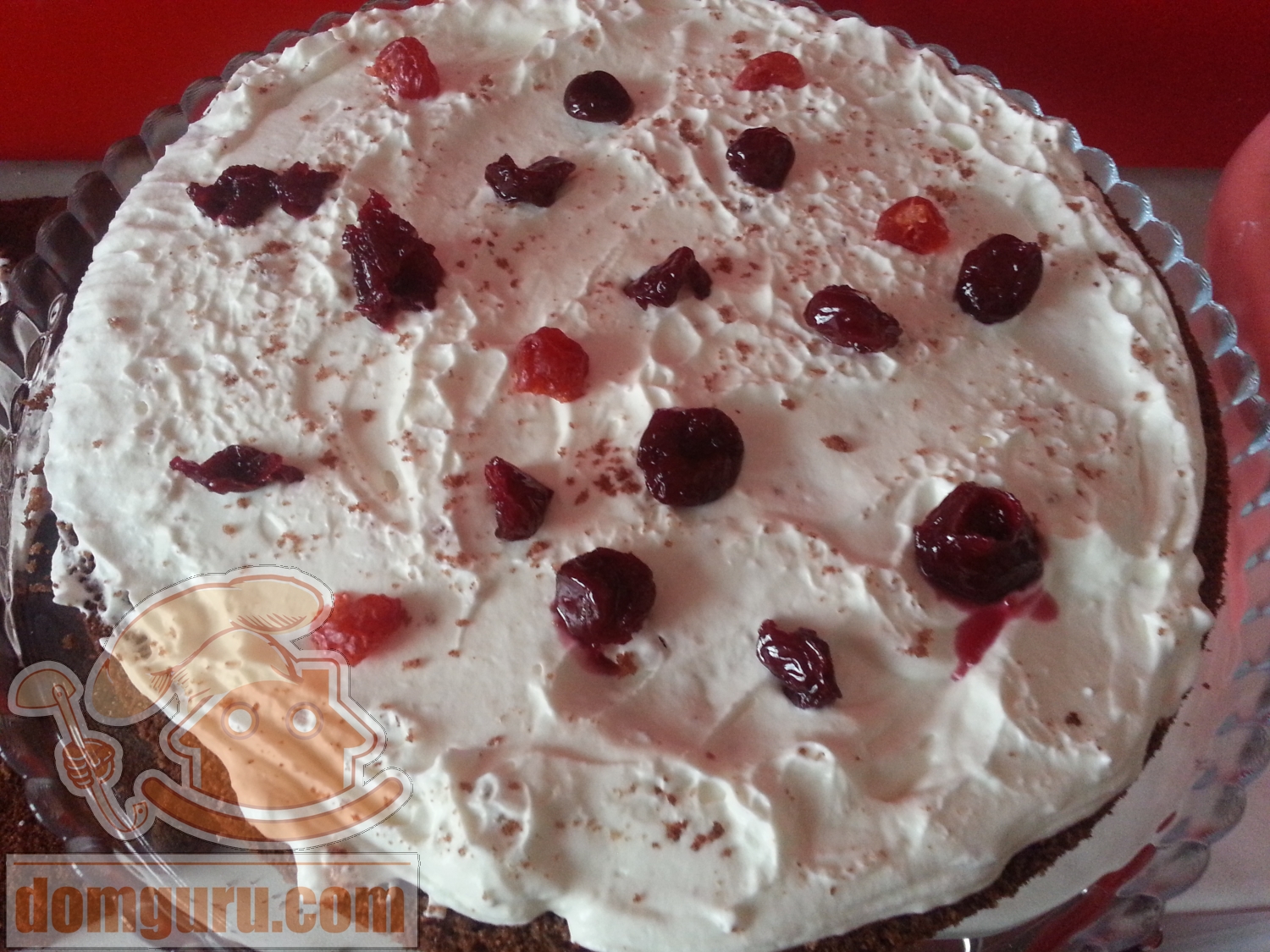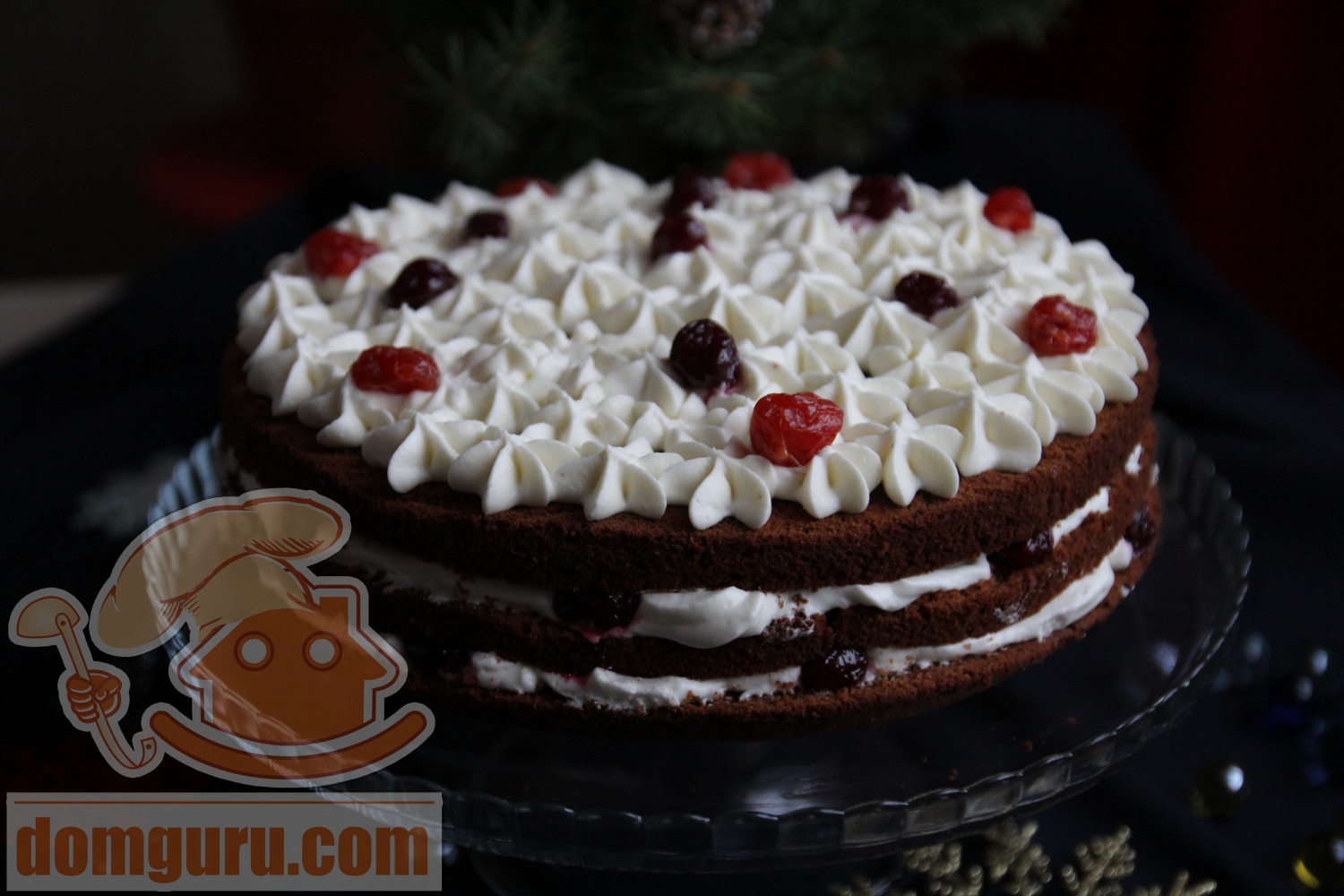 Украсьте торт оставшейся вишней. Приятного аппетита!