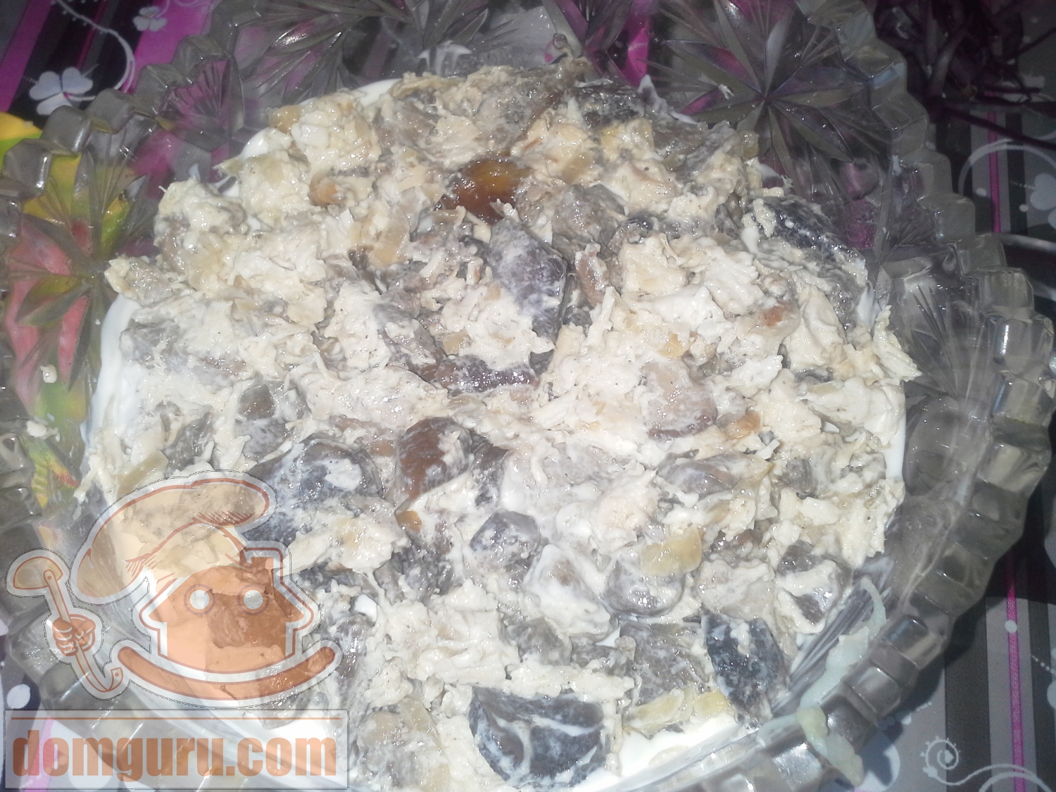 Слоёный салат с курицей и грибами - кулинарный рецепт.
