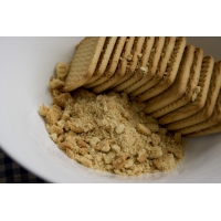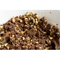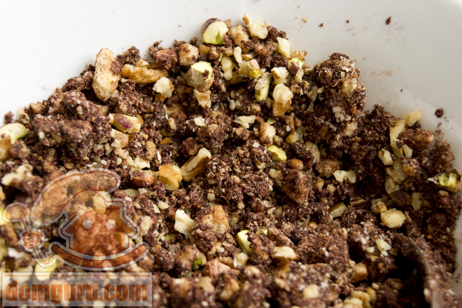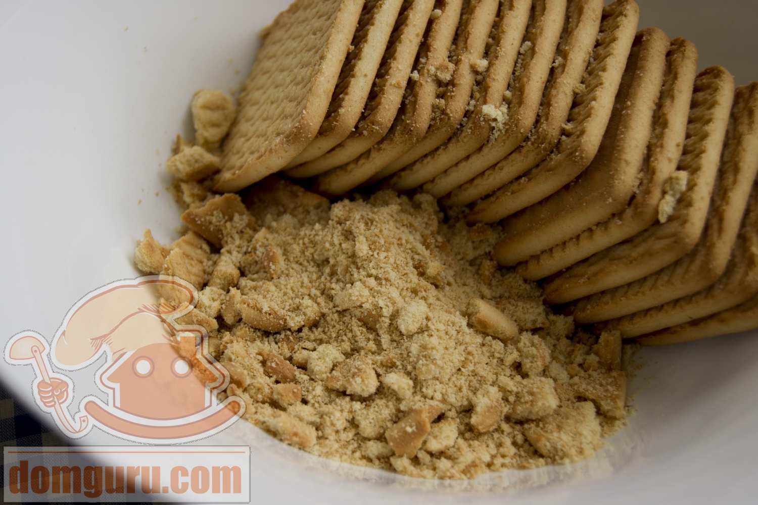 Печенье измельчите в крошку. Пусть она будет не сильно однородной (как песок), а с вкраплением небольших кусочков.