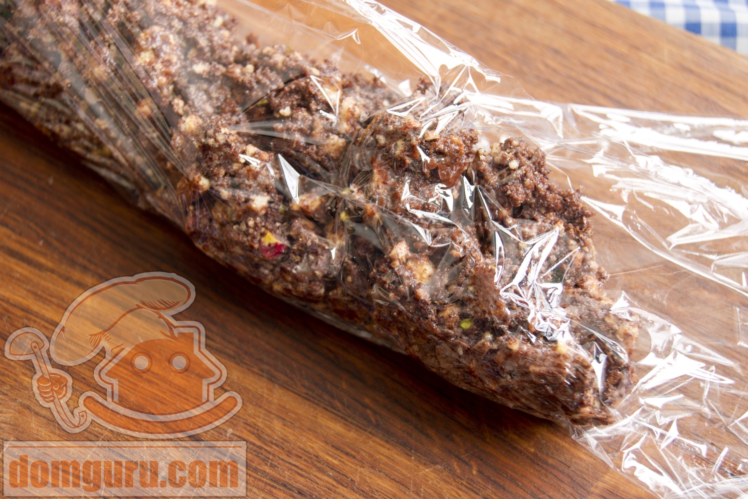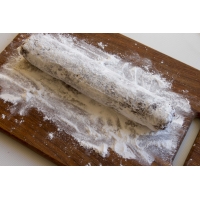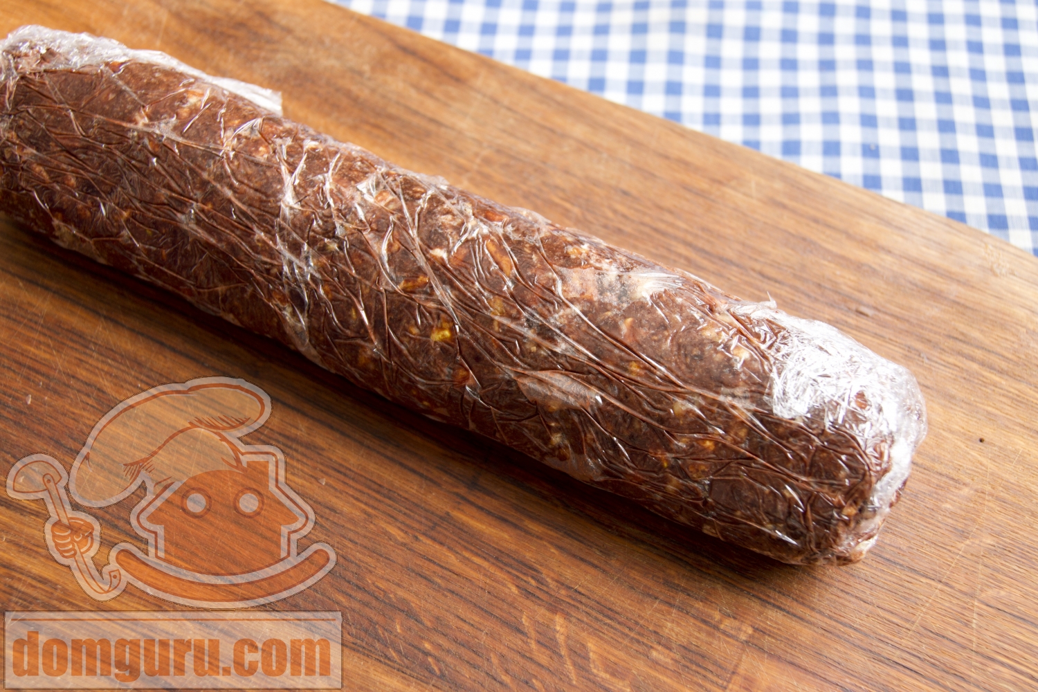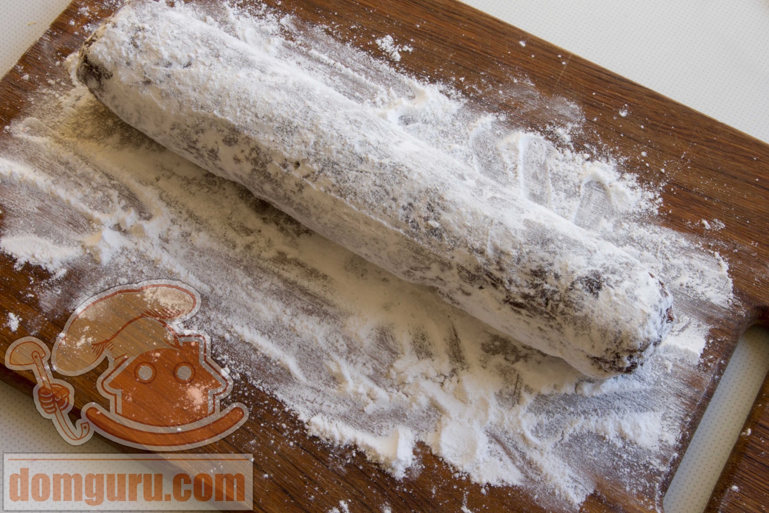 Через 12-24 часа можно достать колбаску и обвалять ее со всех сторон в сахарной пудре, имитируя дорогую и элегантную салями.