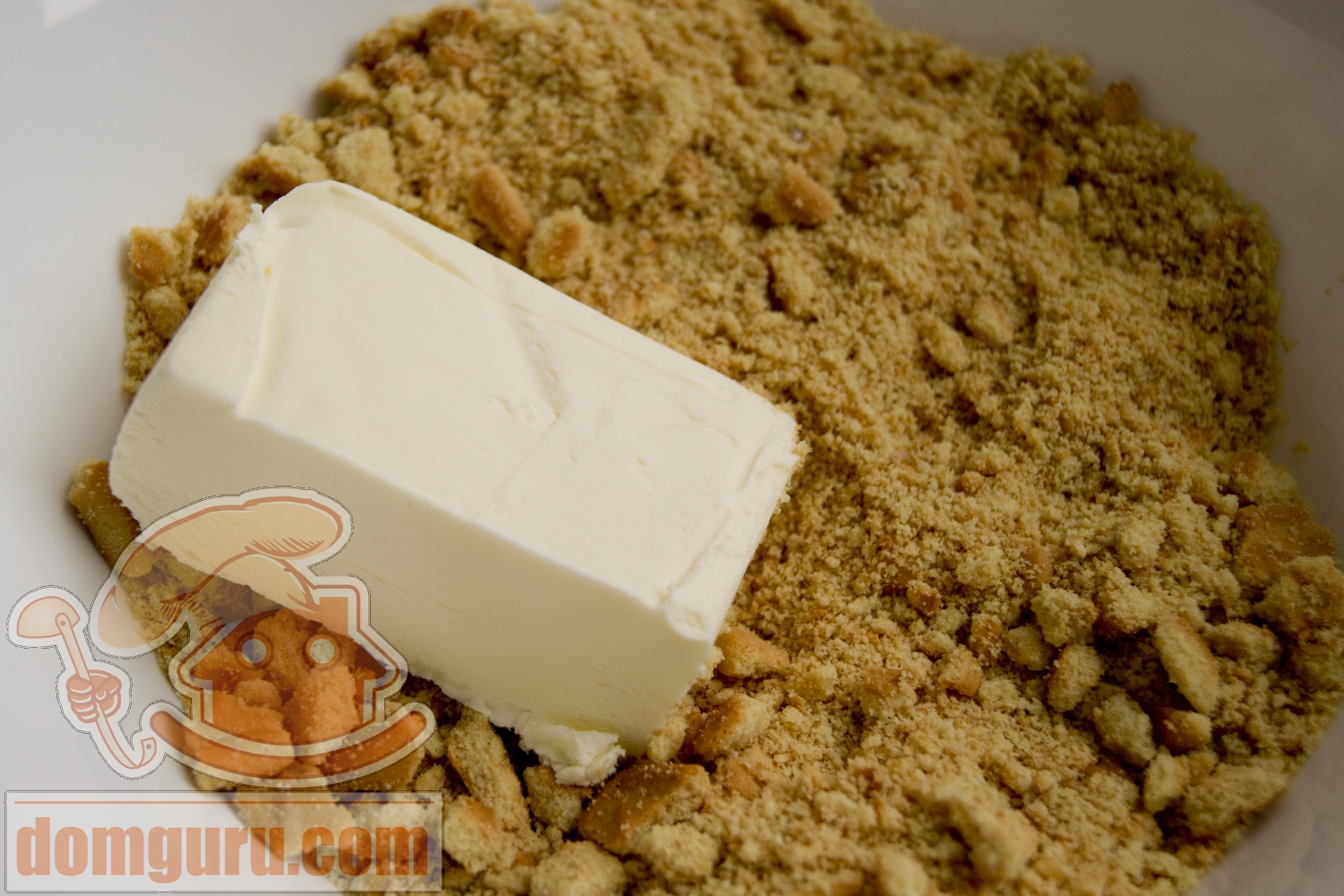 Мягкое сливочное масло добавьте к крошке, разотрите.