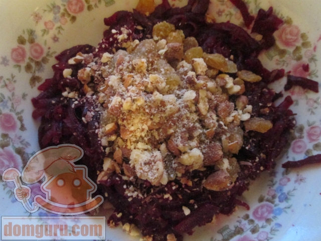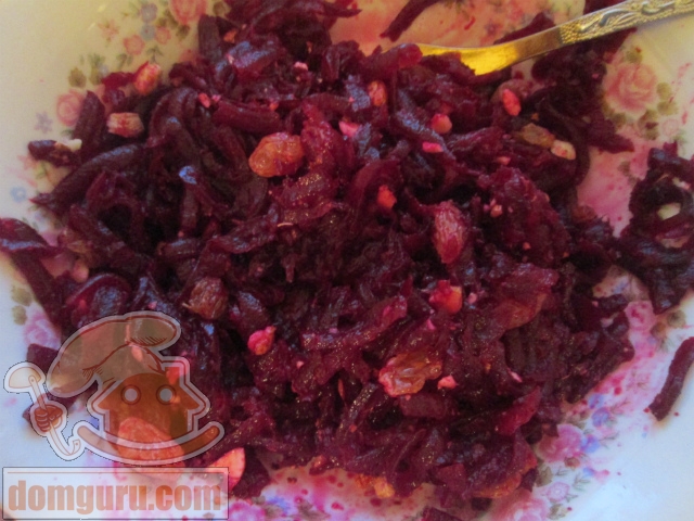 Салат порционный со свеклой и изюмом - кулинарный рецепт.