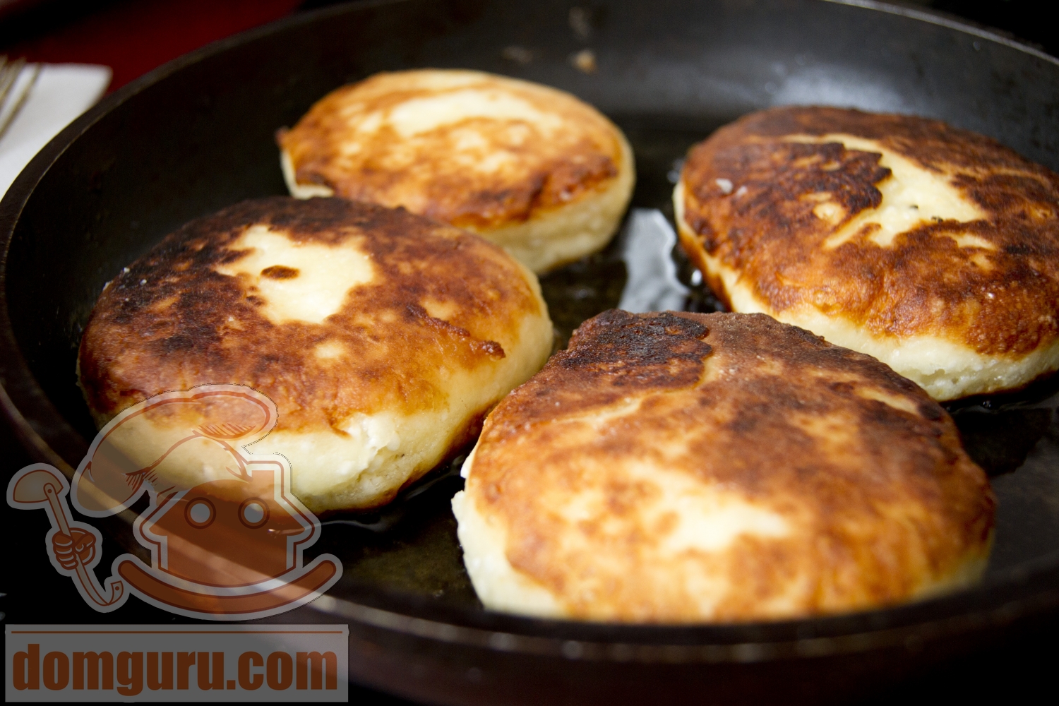 Сформируйте 4 больших сырника, запанируйте их в муке и обжарьте на растительном масле с обеих сторон.