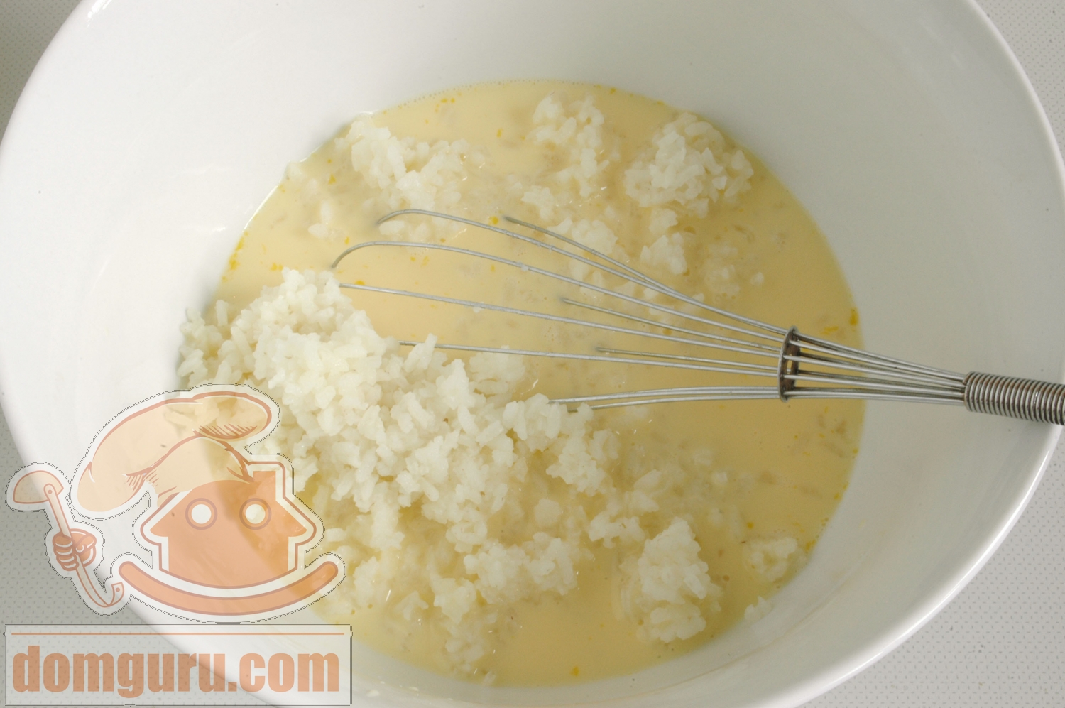 Смажьте форму для выпечки сливочным маслом. Выложите рисовую массу.