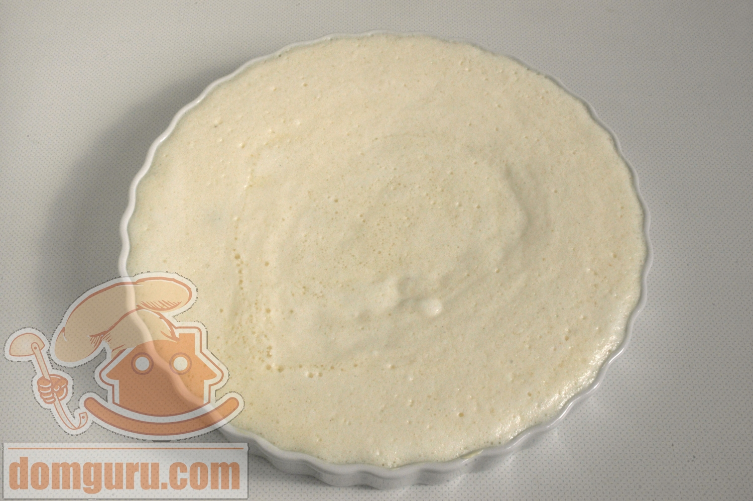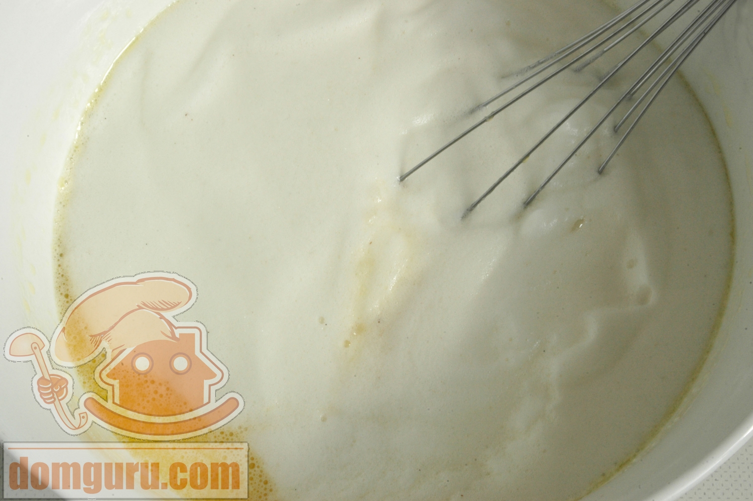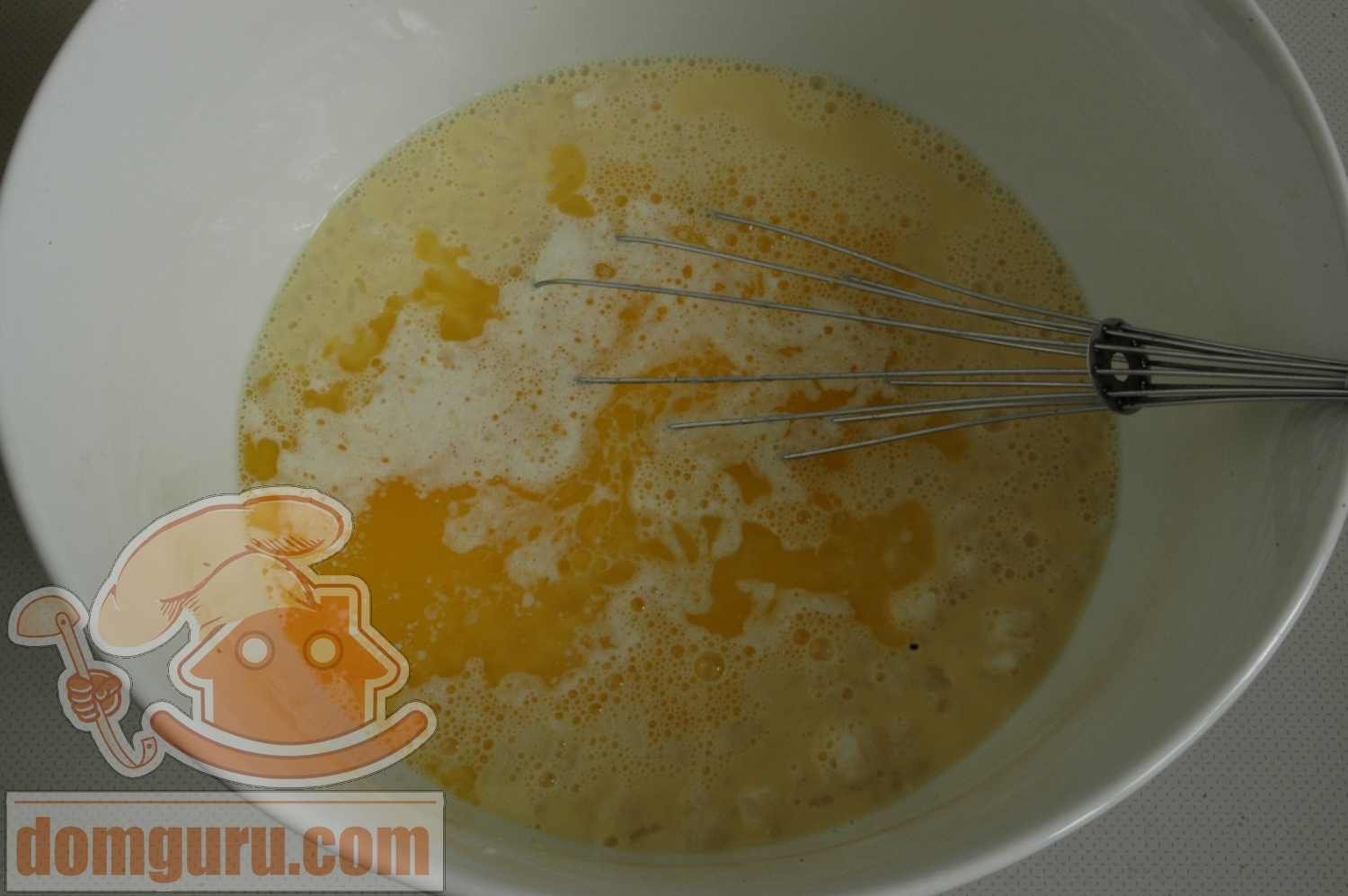 Влейте сливочное масло, растопленное и остуженное до комнатной температуры.