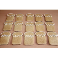 Вылейте яичный белок в небольшую мисочку и частями добавляйте сахарную пудру. Мешайте до однородного состояния, как бы растирая. Треть глазури отложите в отдельную мисочку и добавьте ещё немного сахарной пудры. Готовую густую глазурь переложите в кондитерский мешок.