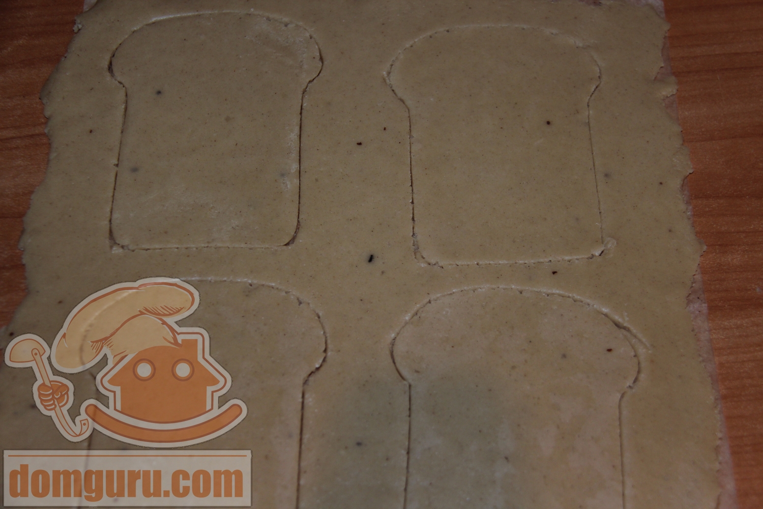 Готовое тесто раскатайте в пласт толщиной 3-4 мм и по шаблону вырежьте куличики.
