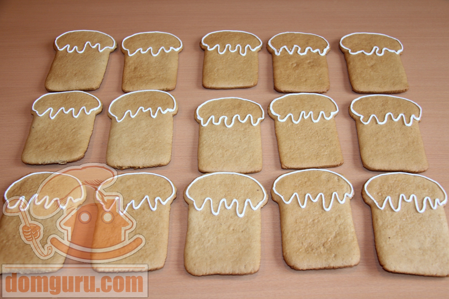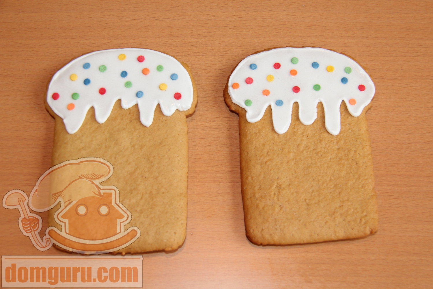 Не давая глазури высохнуть, посыпьте куличики декоративной посыпкой. Дайте пряникам полностью высохнуть.