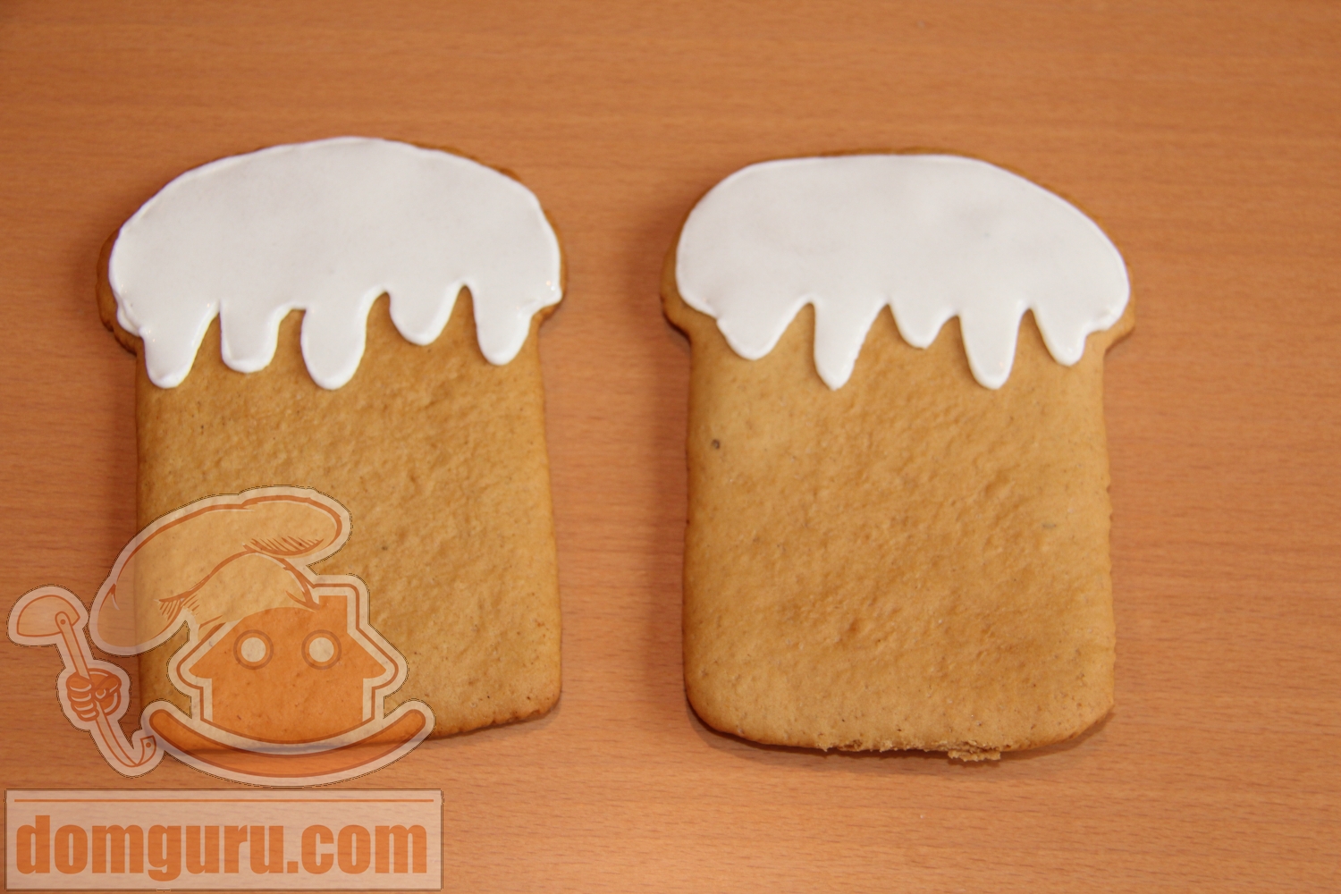 На остывших куличиках нарисуйте густой глазурью контур и дайте ему полностью высохнуть.