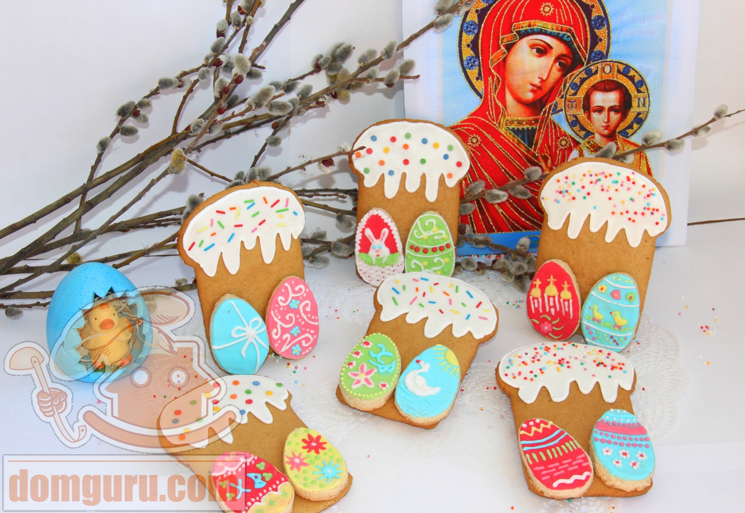 Имбирные пряники "Куличики" рекомендуется подавать с песочным печеньем "Пасхальные яйца".