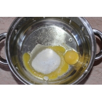 Яйца, соль, сахар смешайте, взбейте блендером.