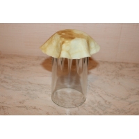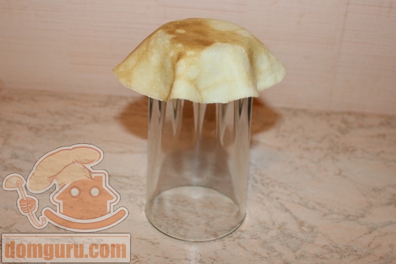 Положите готовый блинчик на перевёрнутый стакан и поставьте в микроволновую печь на 1 минуту.