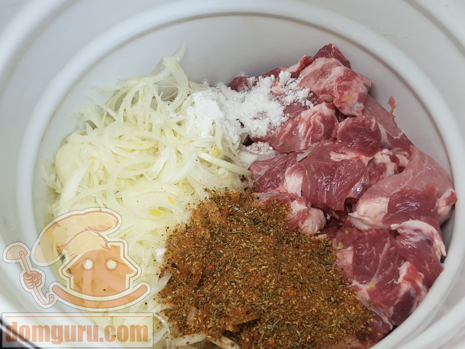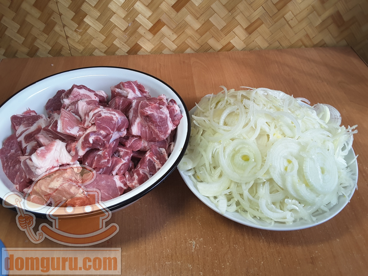 Изюминкой данного рецепта является то, что свинины и лука необходимо для данного рецепта  в равных пропорциях.